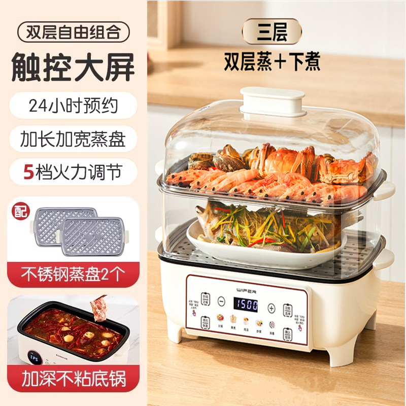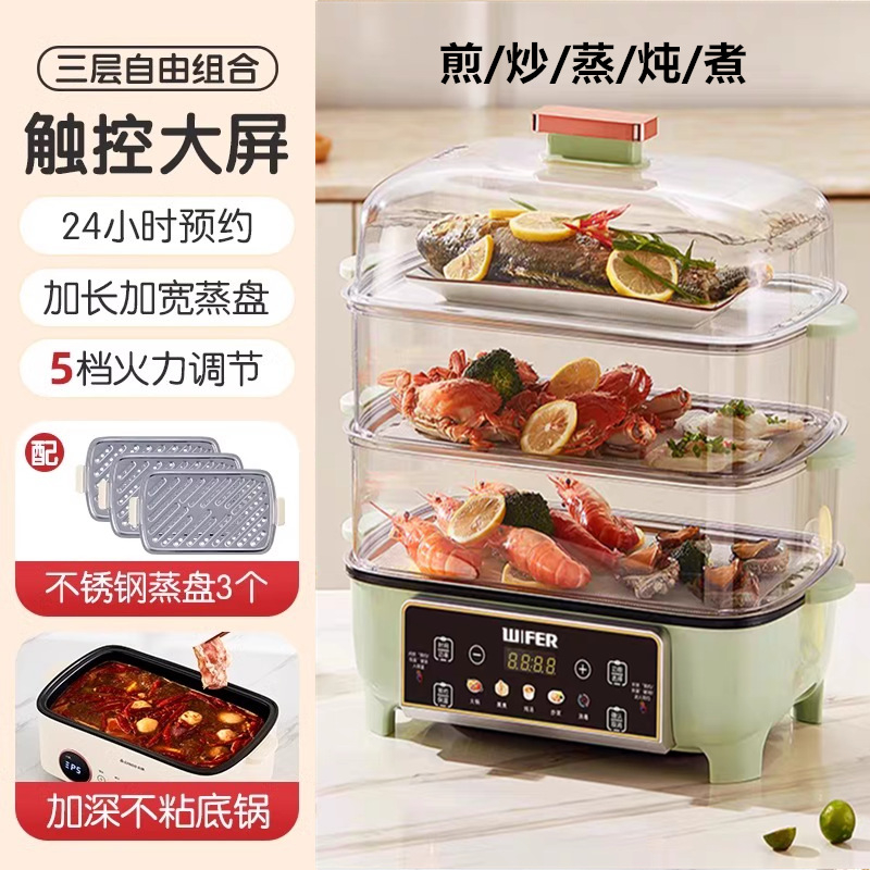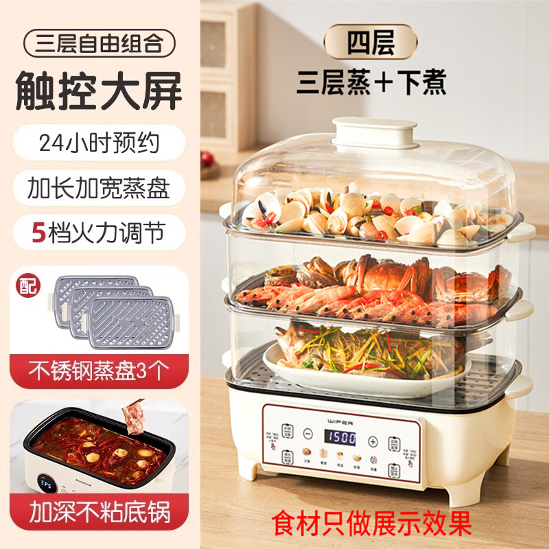 스테인레스 스틸 전기 찜통 다기능 가정용 3 층 대용량 생선 찜기 전기 요리 냄비 전기 냄비 2025 새로운 스타일스토어 가기
