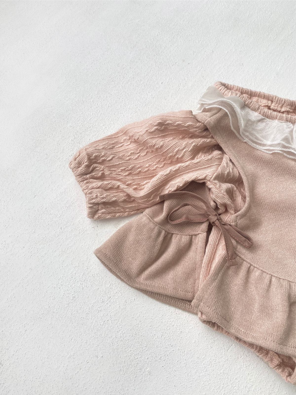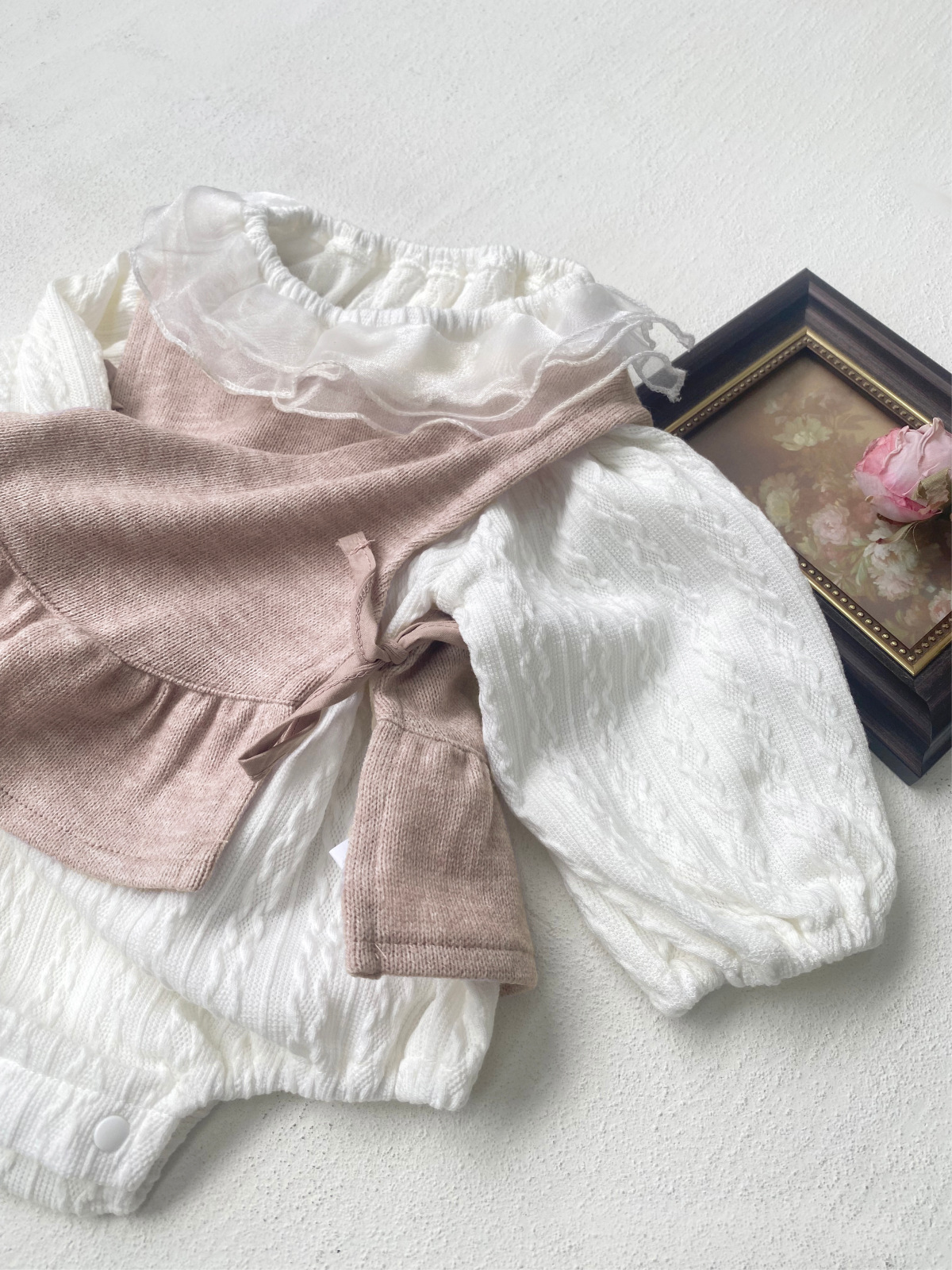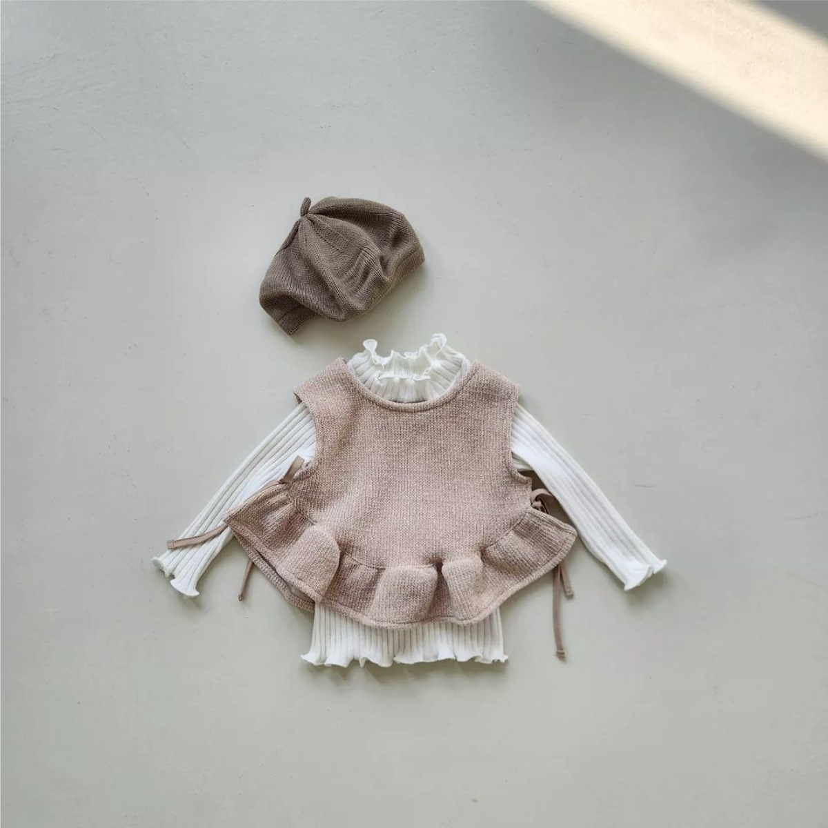 아기 가을, 겨울 스웨터 아기 소녀 니트 프릴 타이 조끼 아기 작은 월간 아기 스웨터 조끼