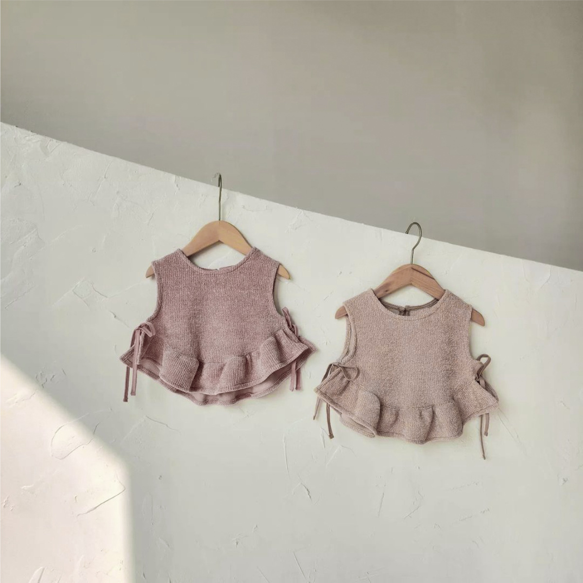 아기 가을, 겨울 스웨터 아기 소녀 니트 프릴 타이 조끼 아기 작은 월간 아기 스웨터 조끼스토어 가기