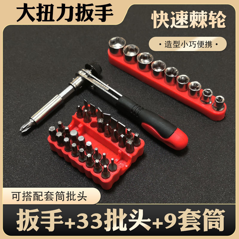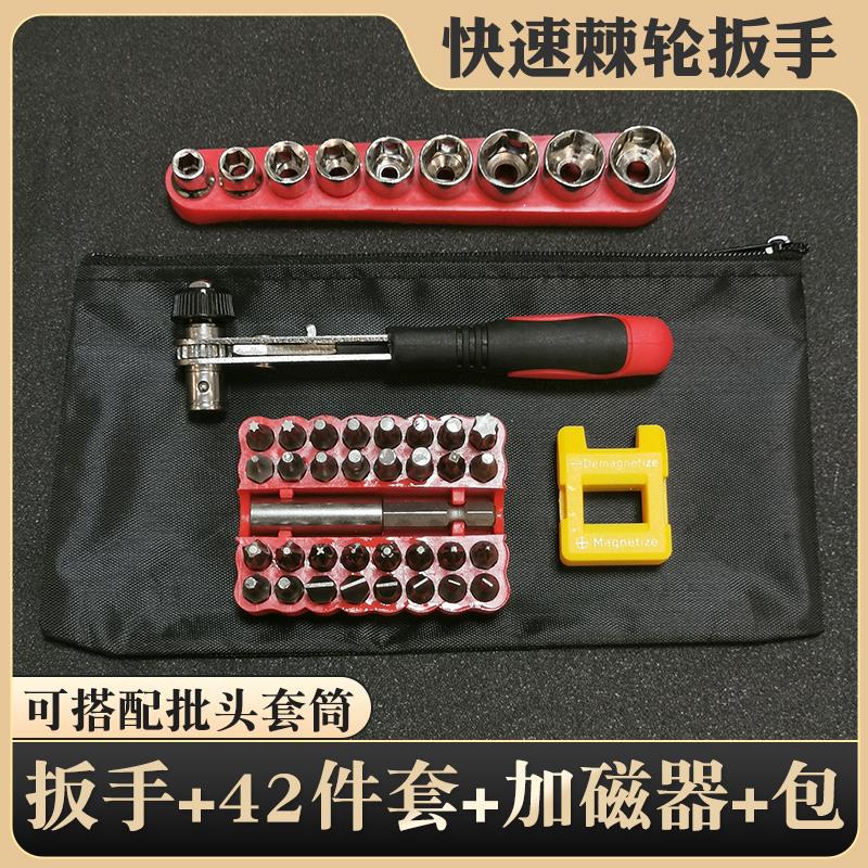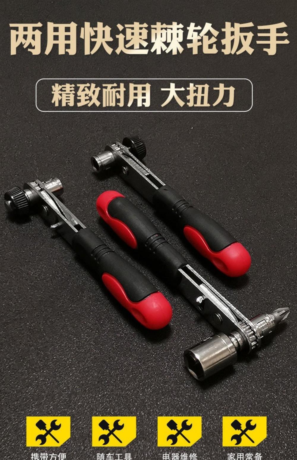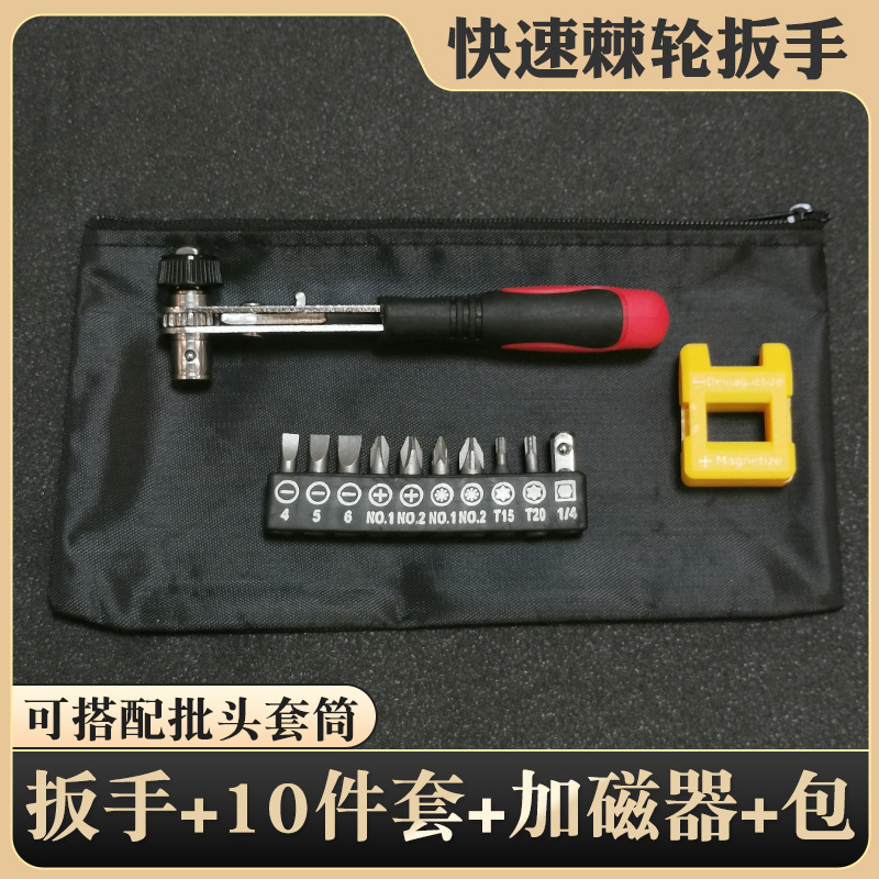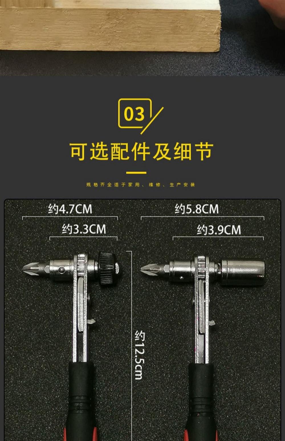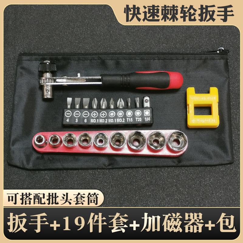 미니 래칫 소형 플라이 렌치 1/4 소켓 양방향 포지티브 및 네거티브 퀵 드라이버 일자형 및 십자형 다기능 세트스토어 가기