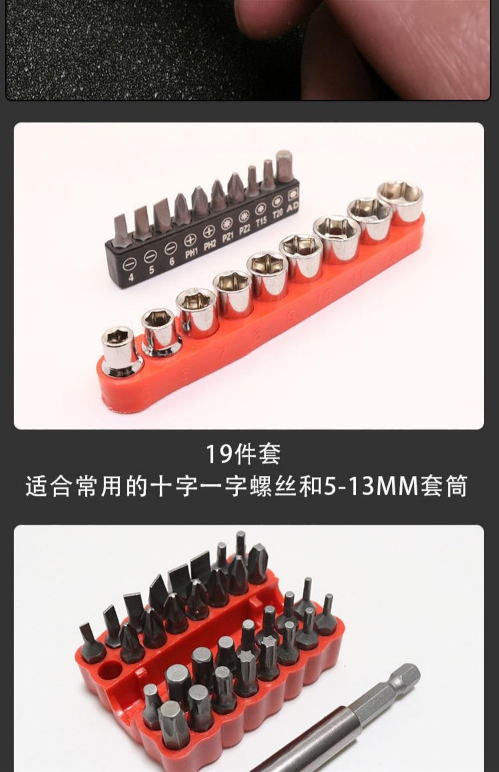 • 빠르고 쉬운 소켓 렌치(빨간색과 검정색 손잡이) + 비트 + 자화 장치 + 가방 + 소켓