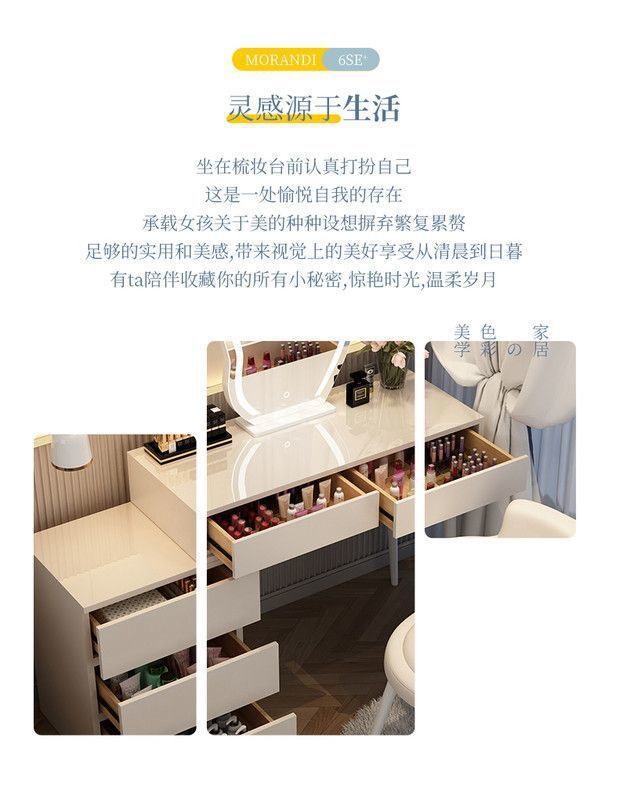 크림 스타일의 새로운 화장대, 현대적인 미니멀리스트 수납 캐비닛, 침대 옆 탁자, 화장대, 일체형 책상, 접이식 화장대
