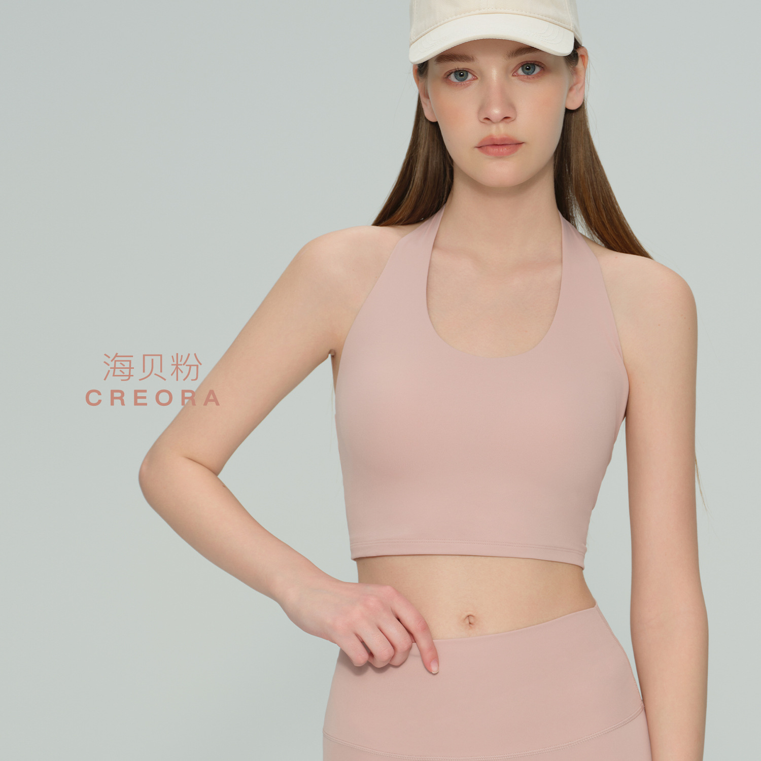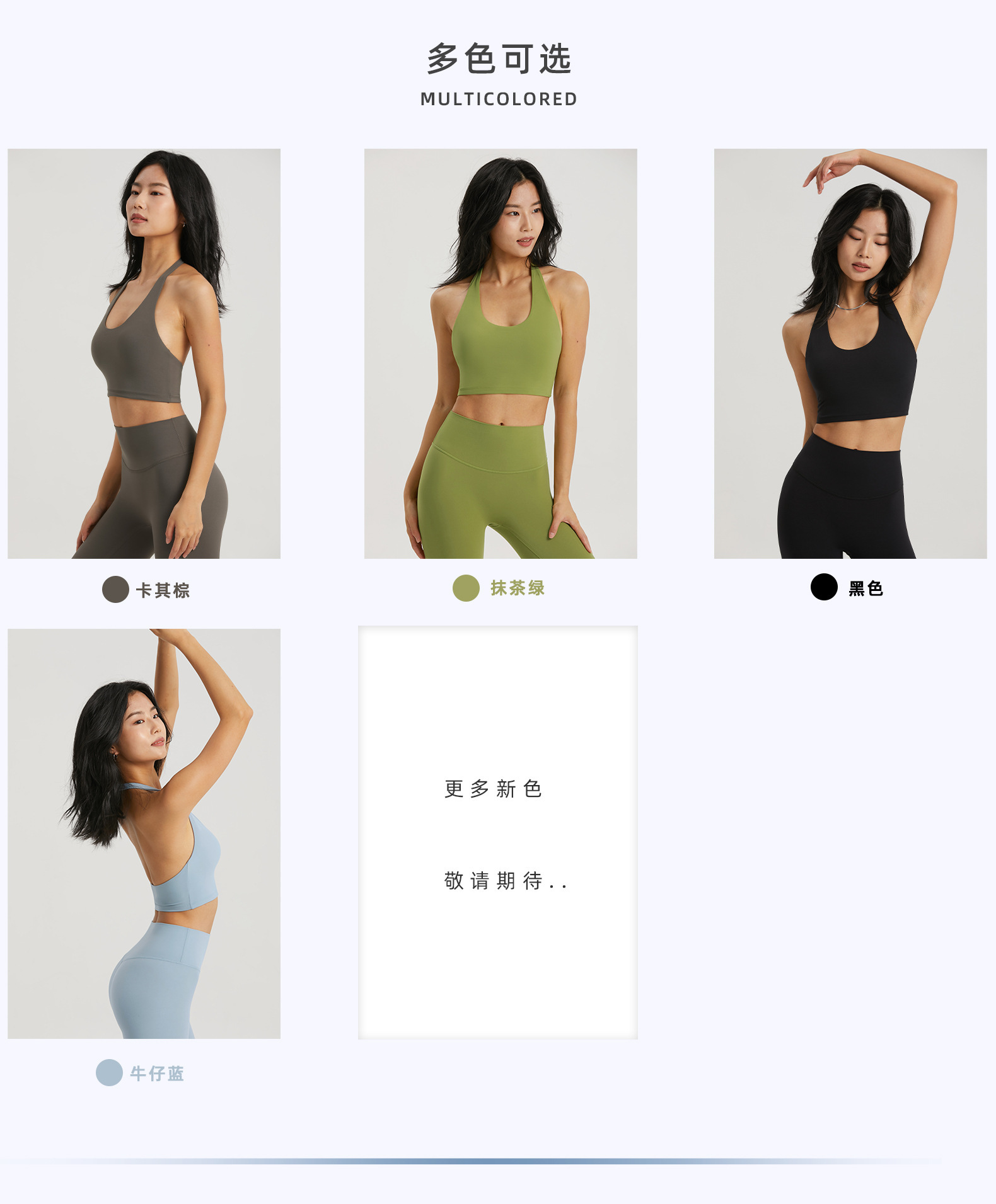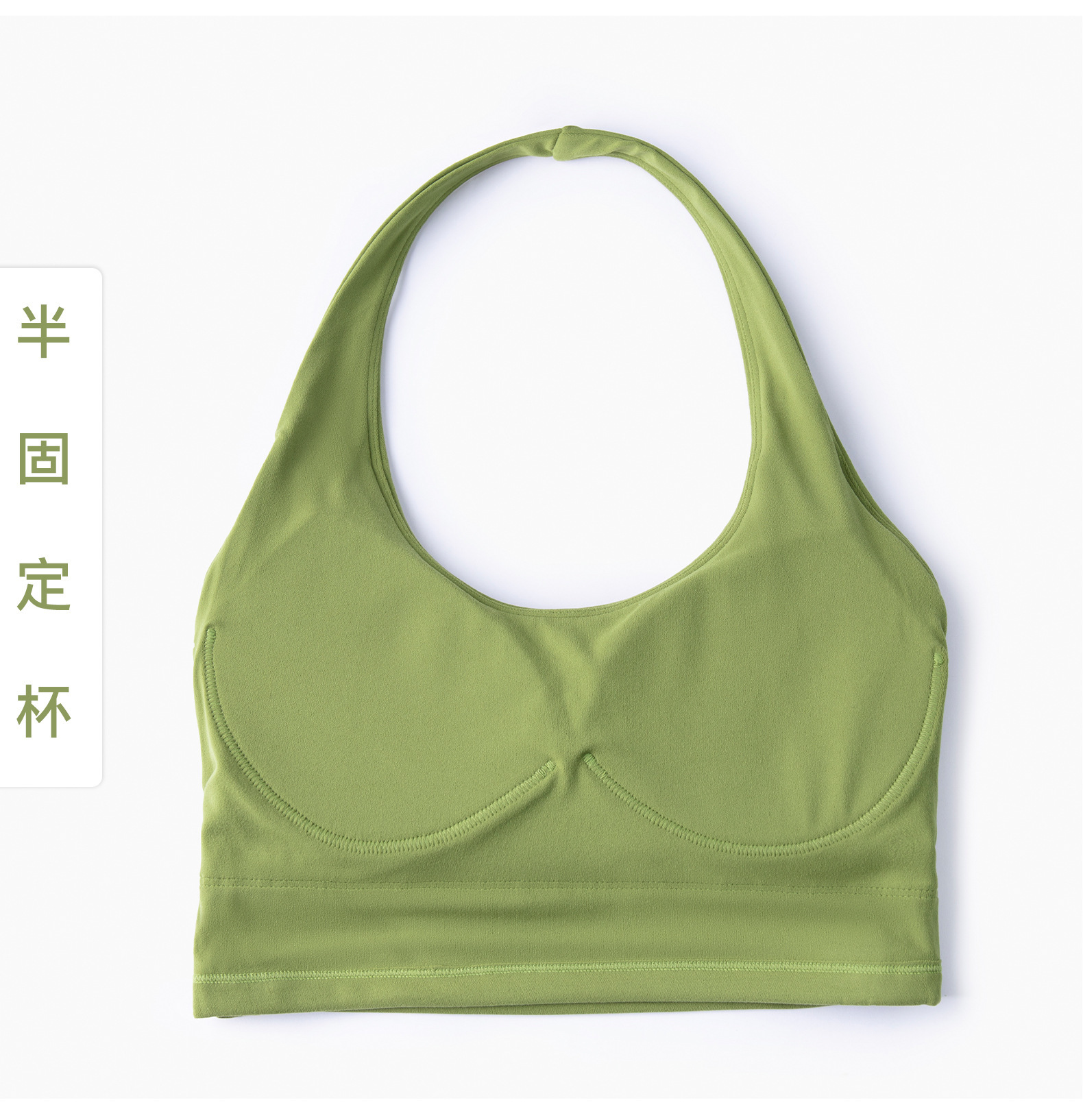 NUF 홀터넥 스포츠 브라, 고정컵 누드 느낌 요가탑, 아름다운 등 라인을 연출하는 푸쉬업 피트니스 브라, 여성용 가슴 패드 브라