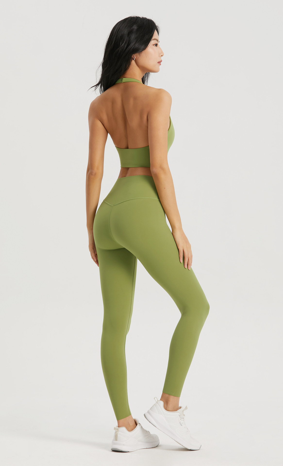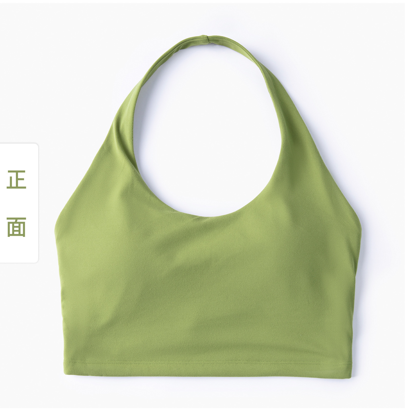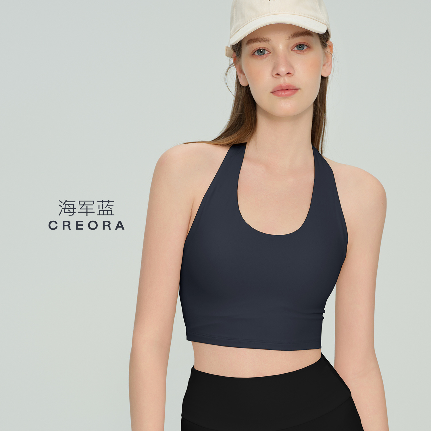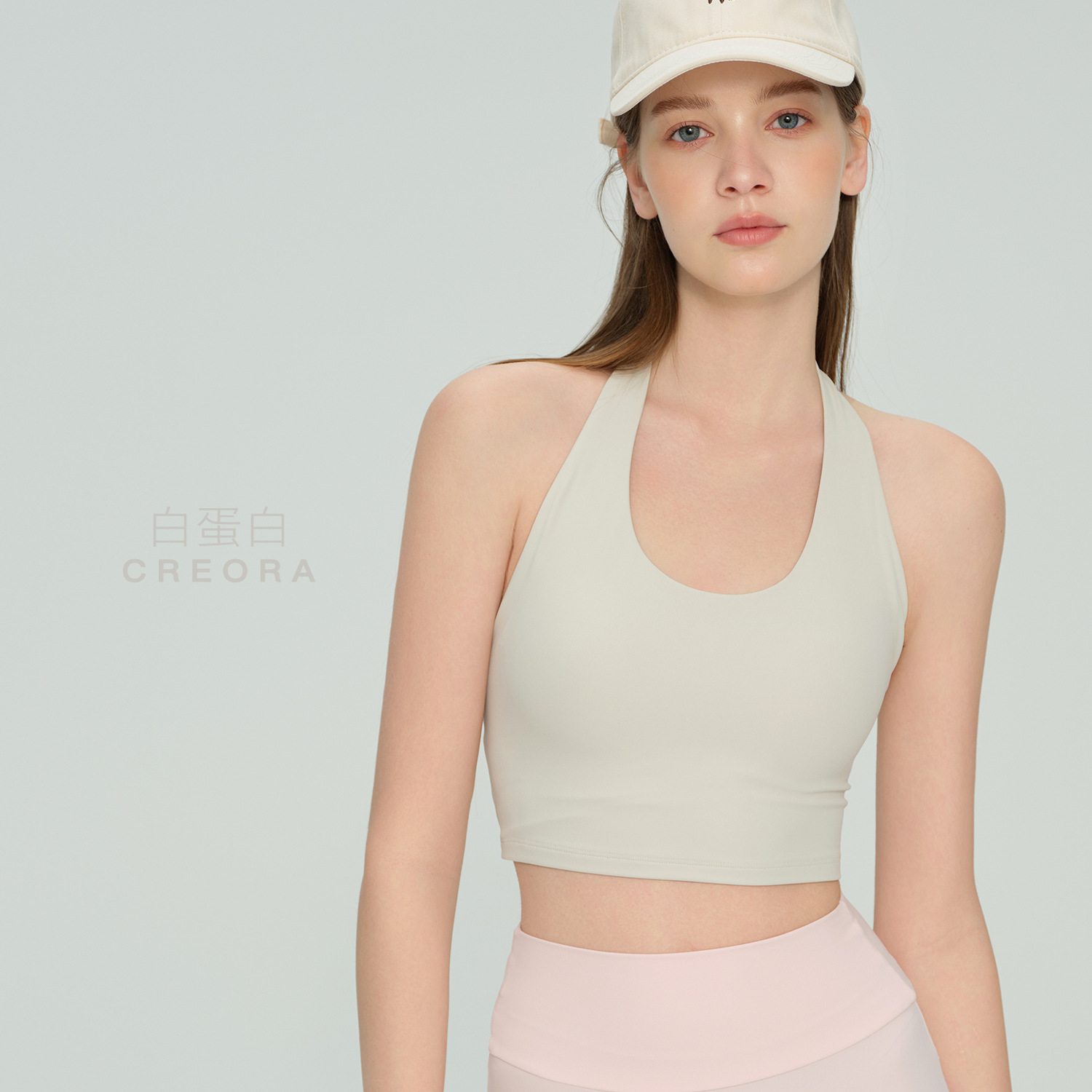 NUF 홀터넥 스포츠 브라, 고정컵 누드 느낌 요가탑, 아름다운 등 라인을 연출하는 푸쉬업 피트니스 브라, 여성용 가슴 패드 브라