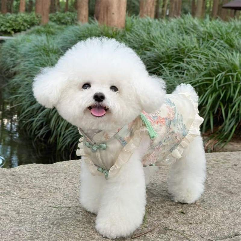 개와 고양이 봄과 여름 새로운 중국 스타일 치파오 민소매 버튼 새틴 중국 스타일 스커트 작은 말 시시 개 옷 얇은스토어 가기