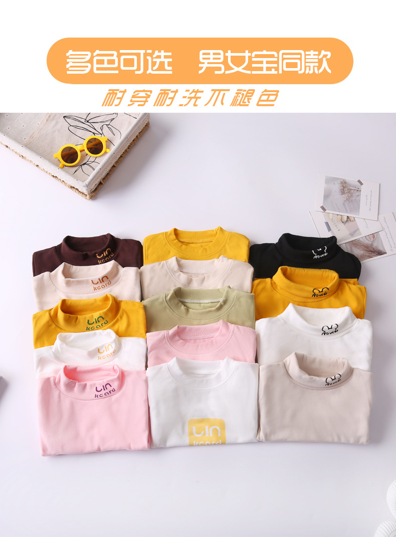 아동용 하의 셔츠, 남아용 상의, 여아용 이너웨어, 가을 겨울 긴팔 티셔츠, 터틀넥 셔츠, 베이비 로우넥, 미드하이 얇은 스타일