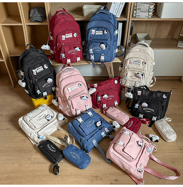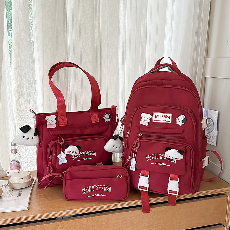 2025 새로운 한국어 버전 3 피스 배낭 새로운 학생 학교 가방 여성 대용량 패션 캐주얼 배낭 도매