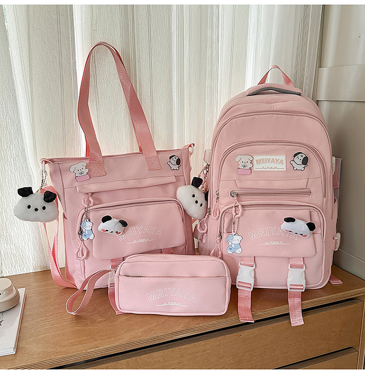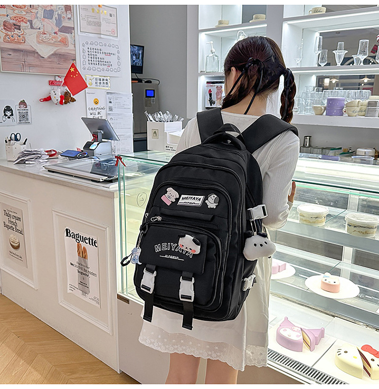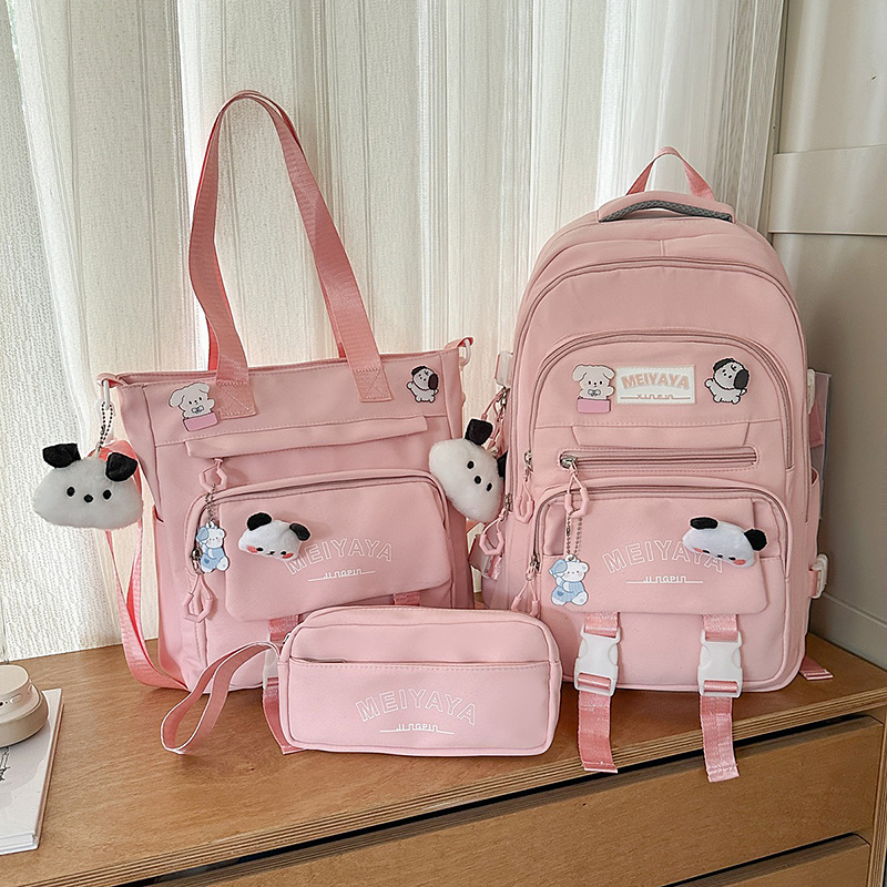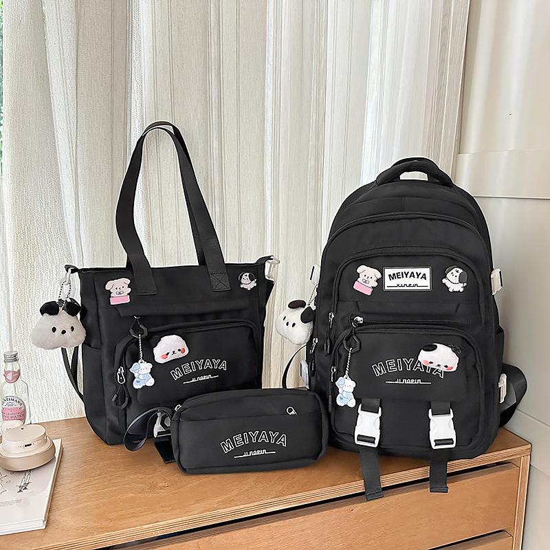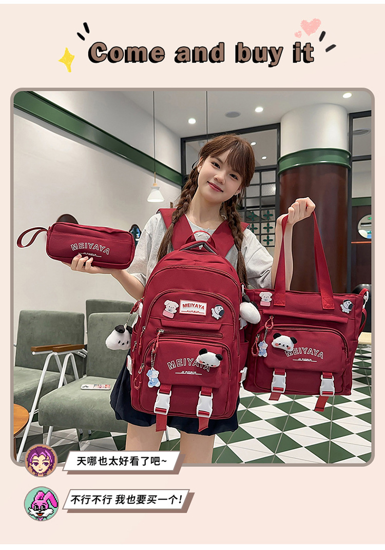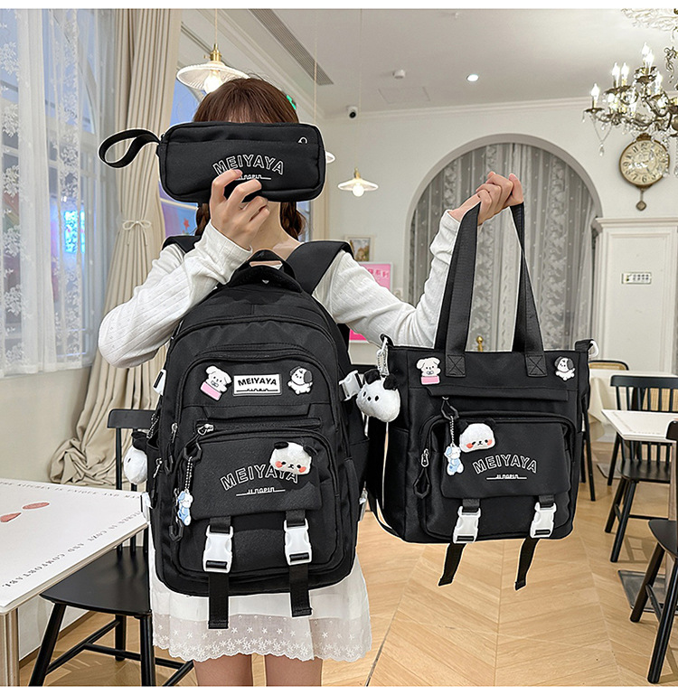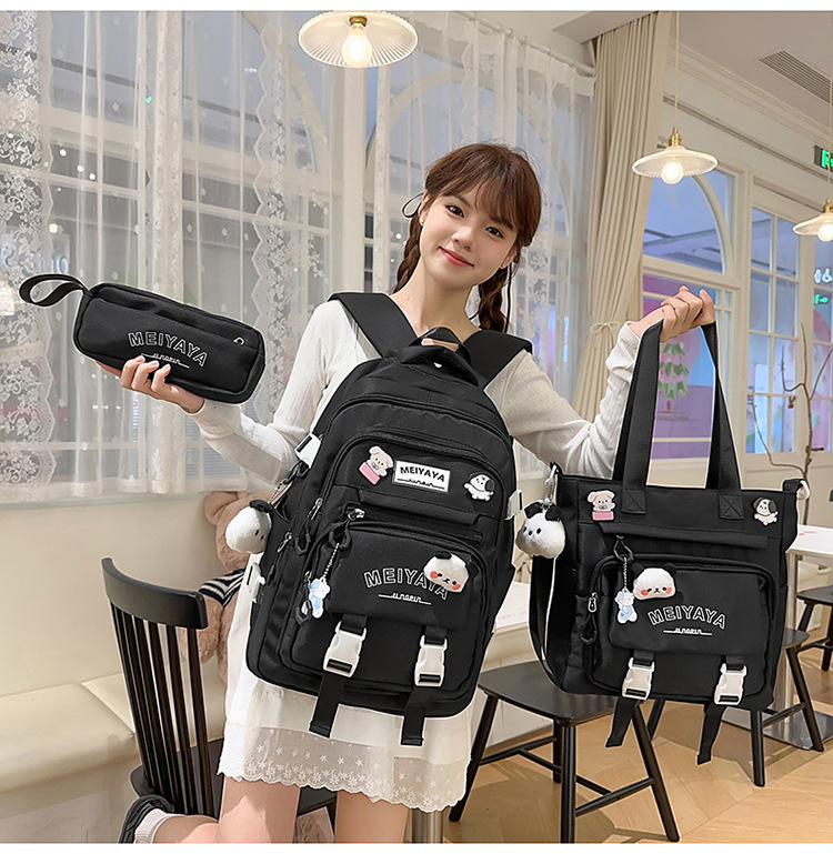 2025 새로운 한국어 버전 3 피스 배낭 새로운 학생 학교 가방 여성 대용량 패션 캐주얼 배낭 도매스토어 가기