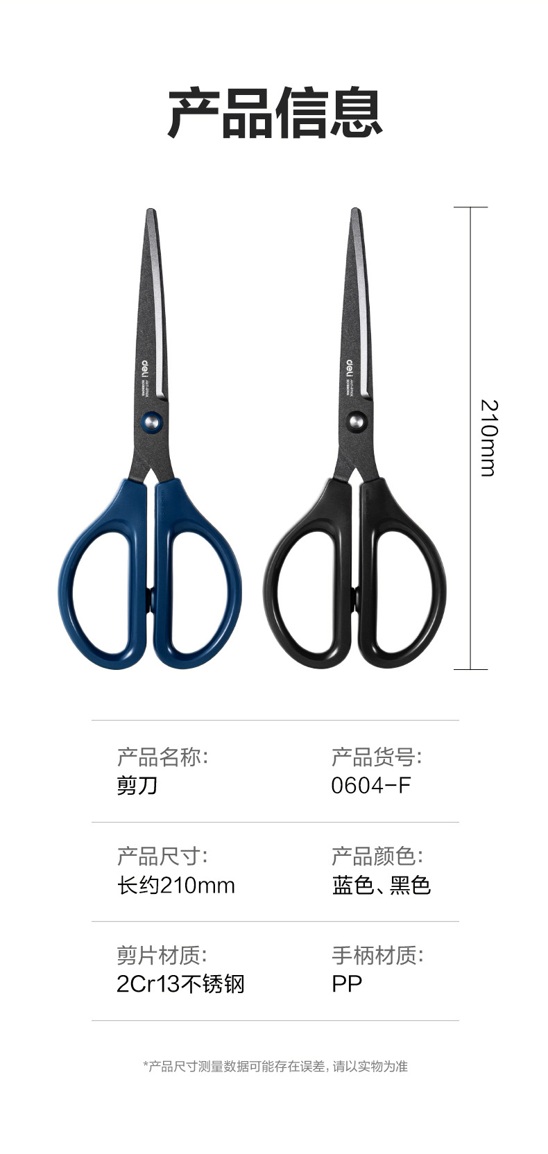 델리 블랙 블레이드 가위 스테인레스 스틸 테프론 붙지 않는 접착제 사무실 홈 학습 봉제 종이 절단 수제스토어 가기