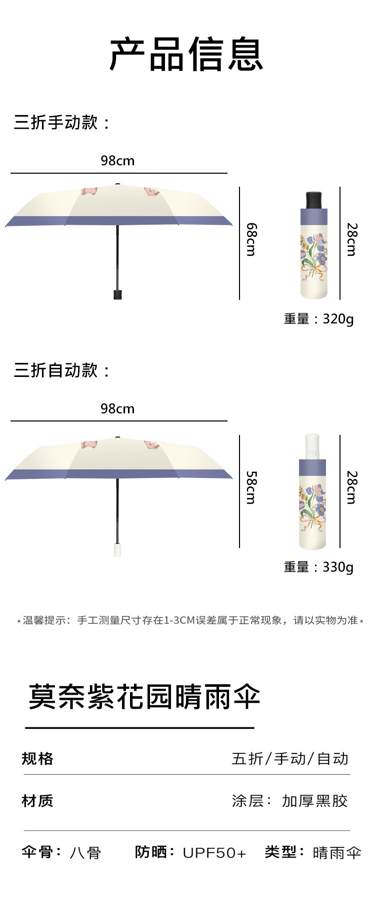 우산, 신선하고 완전 자동 자외선 차단 및 자외선 차단 우산, 접이식 우산, 비닐 우산, 비 또는 빛 우산