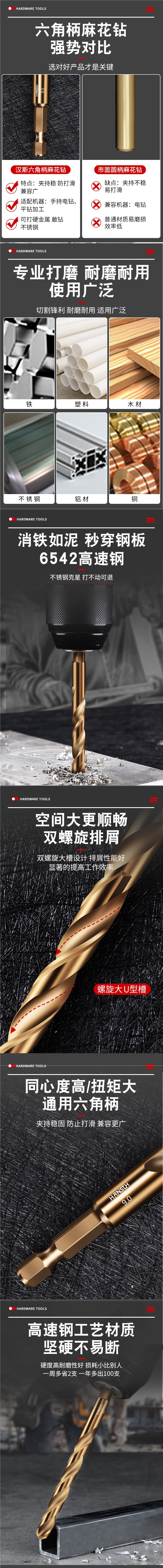 도매 육각 핸들 트위스트 드릴 비트 스테인레스 스틸 철판 금속 철 프레임 코발트 직선 핸들 다기능스토어 가기