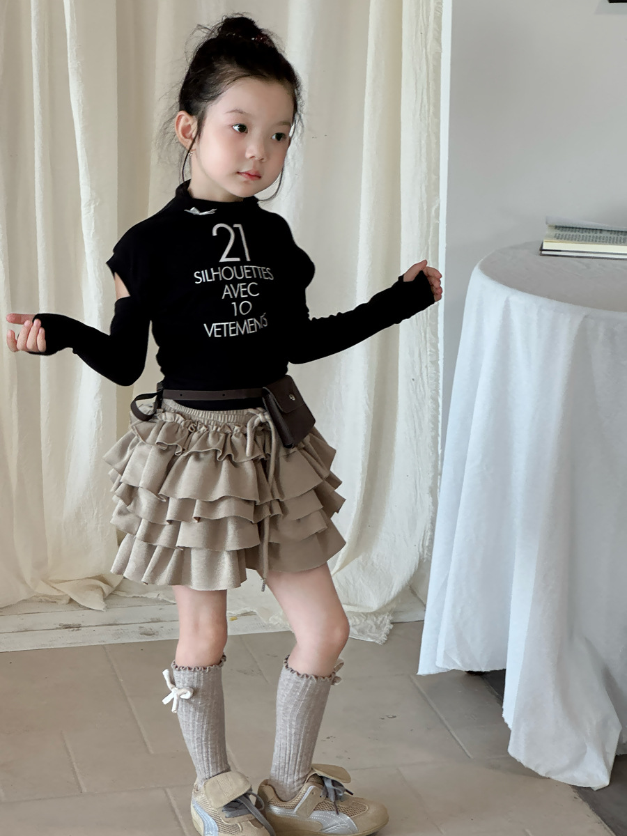 Yuyu Princess Girls 가을 한국 스타일 레터 슬림 티셔츠 아동용 달콤하고 매운 반팔 스플 라이스 반팔 탑