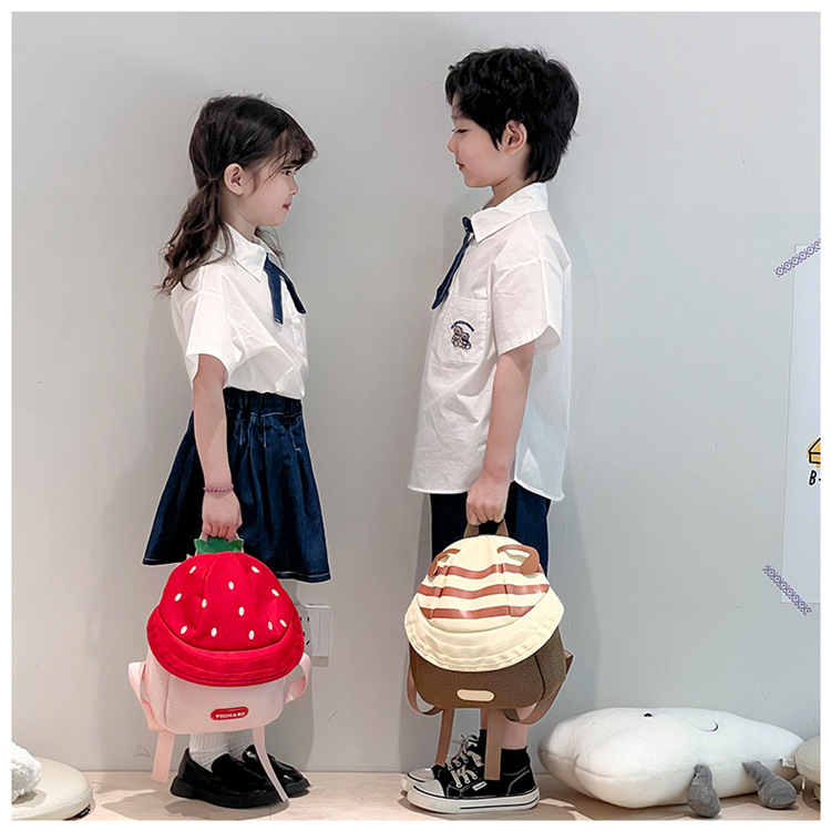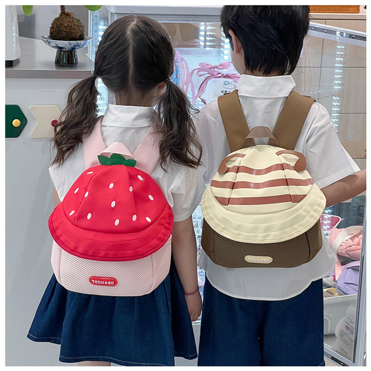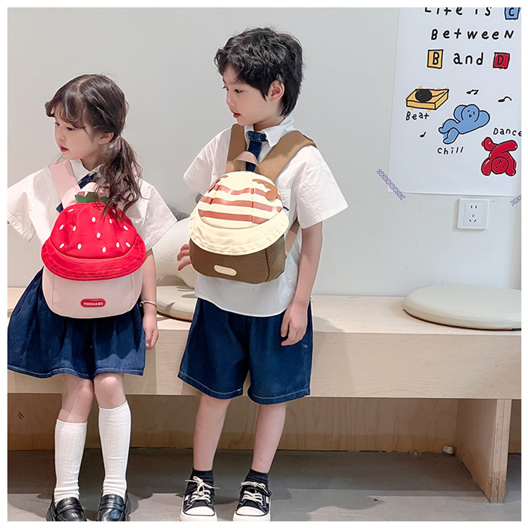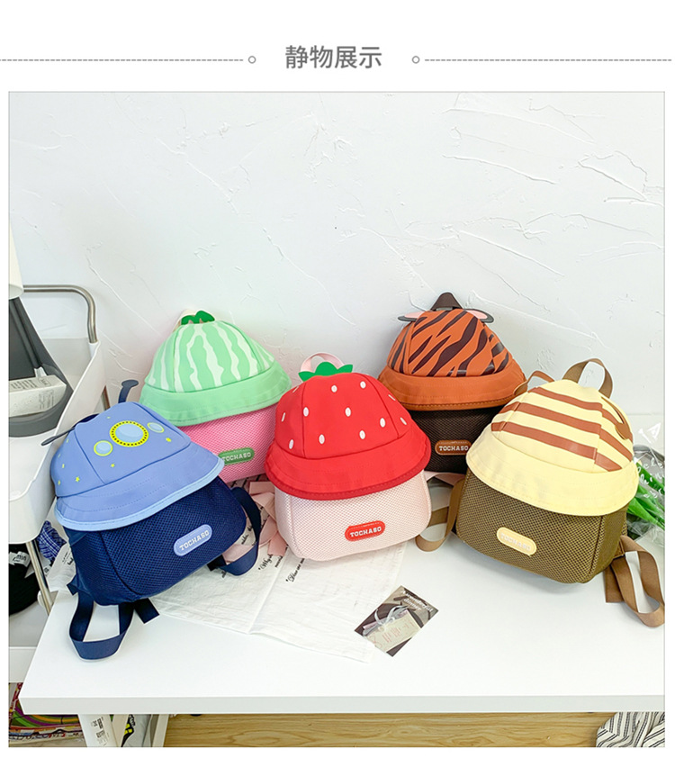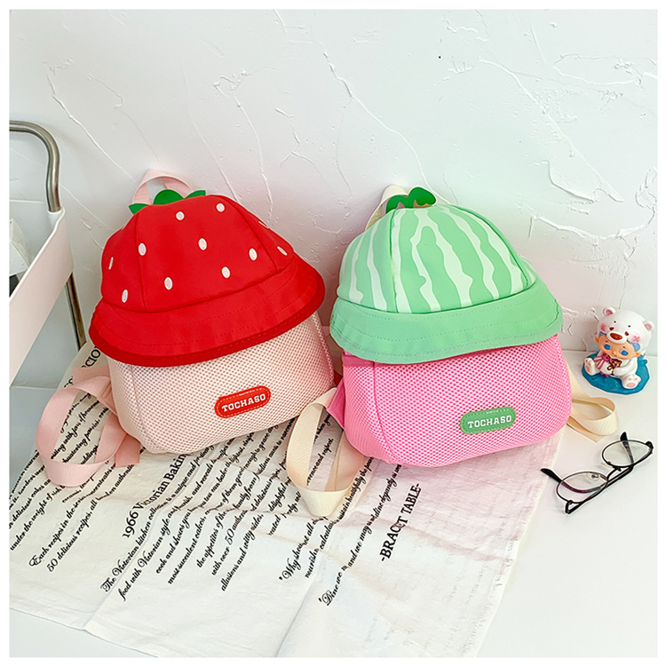 어린이 배낭 소녀 귀여운 만화 과일 모자 배낭 2025 새로운 남성과 여성의 아기 유치원 학교 가방스토어 가기