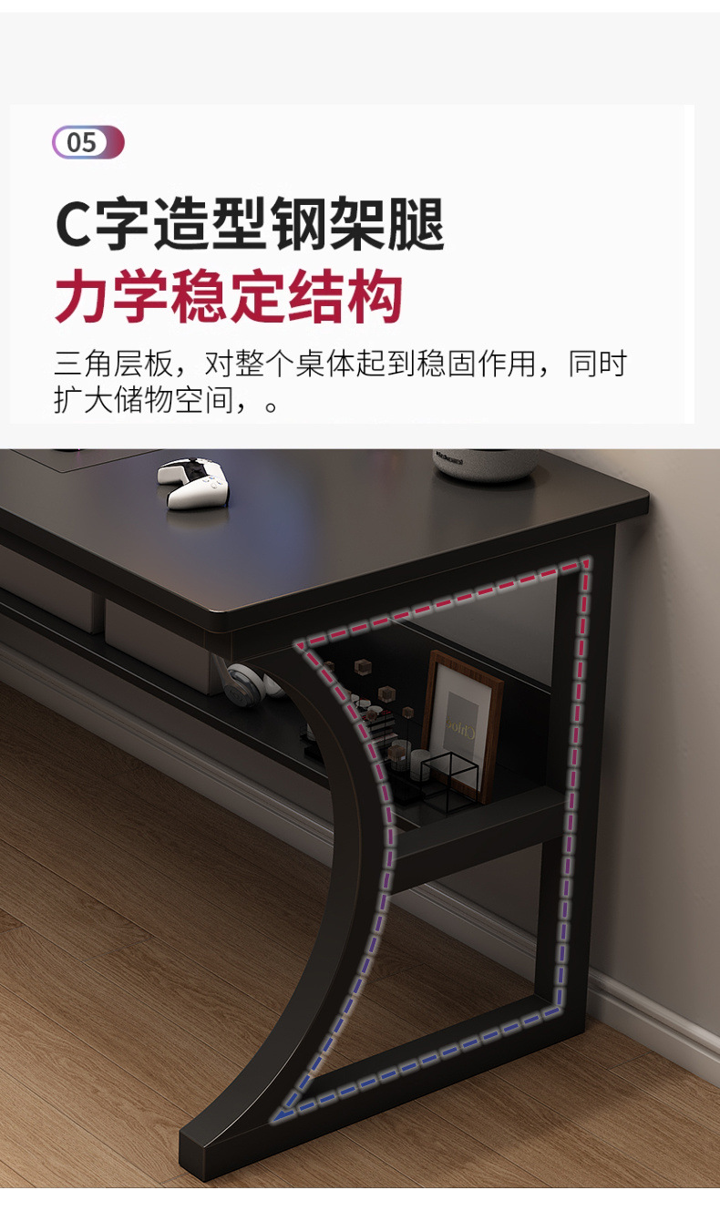 • [책상 밑 수납선반 포함] 블랙 120cm