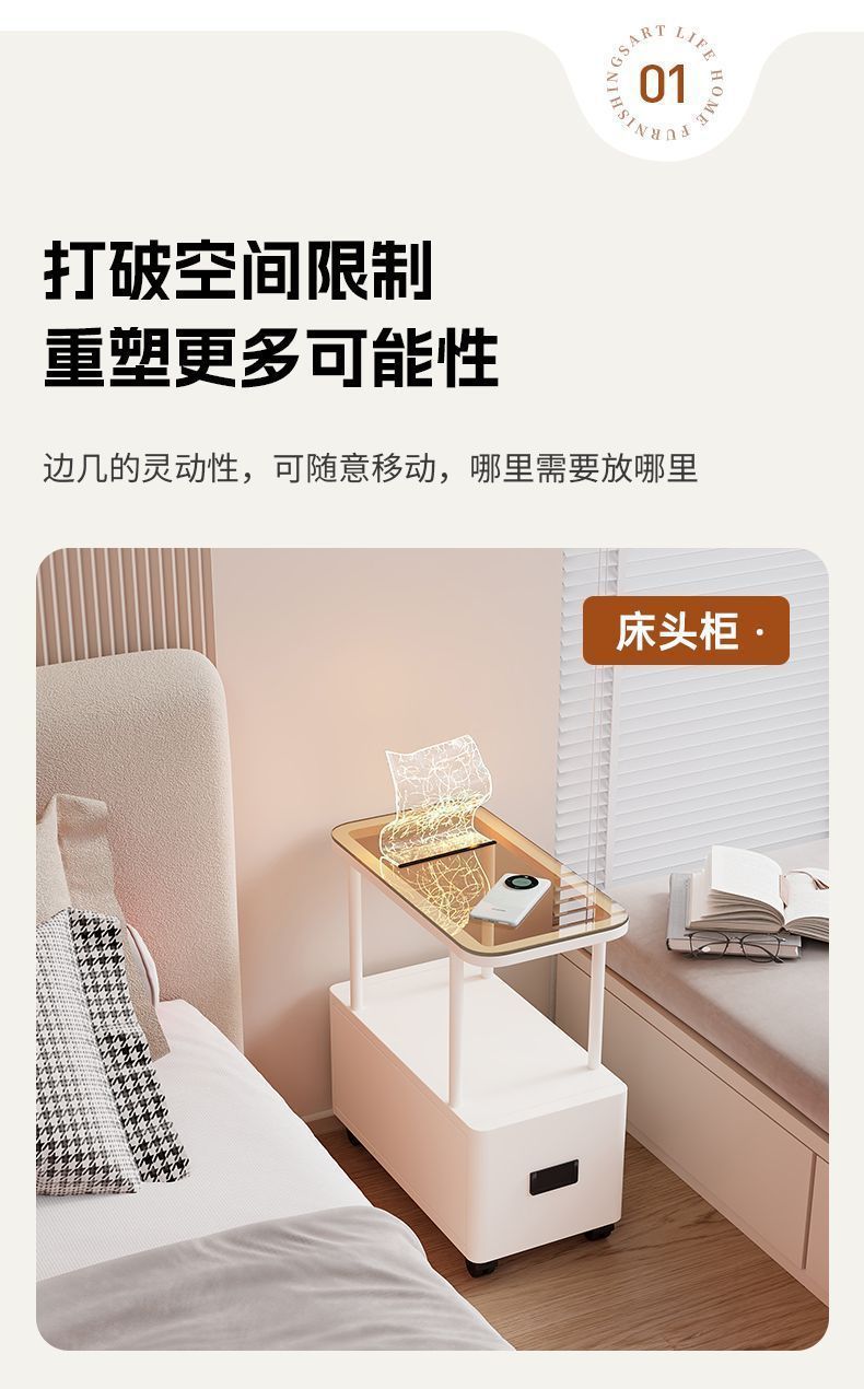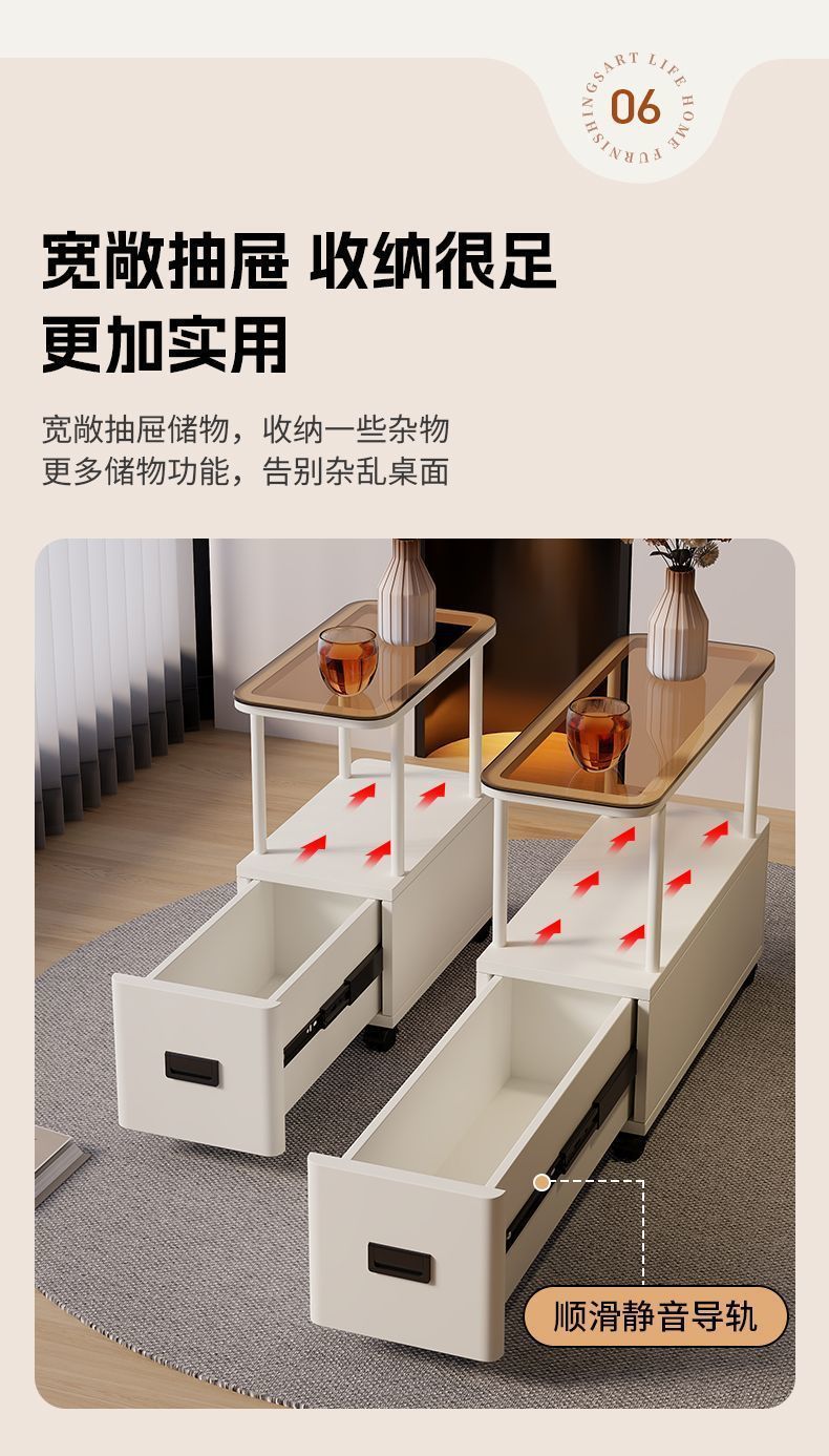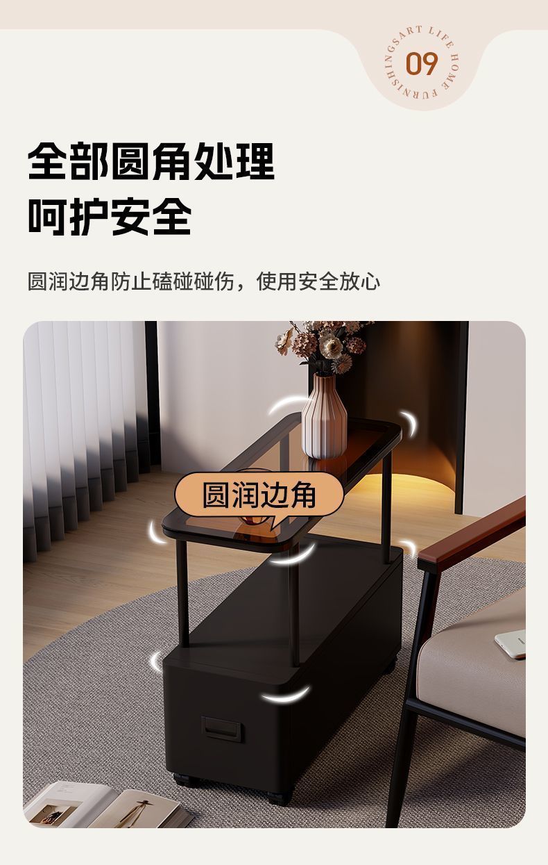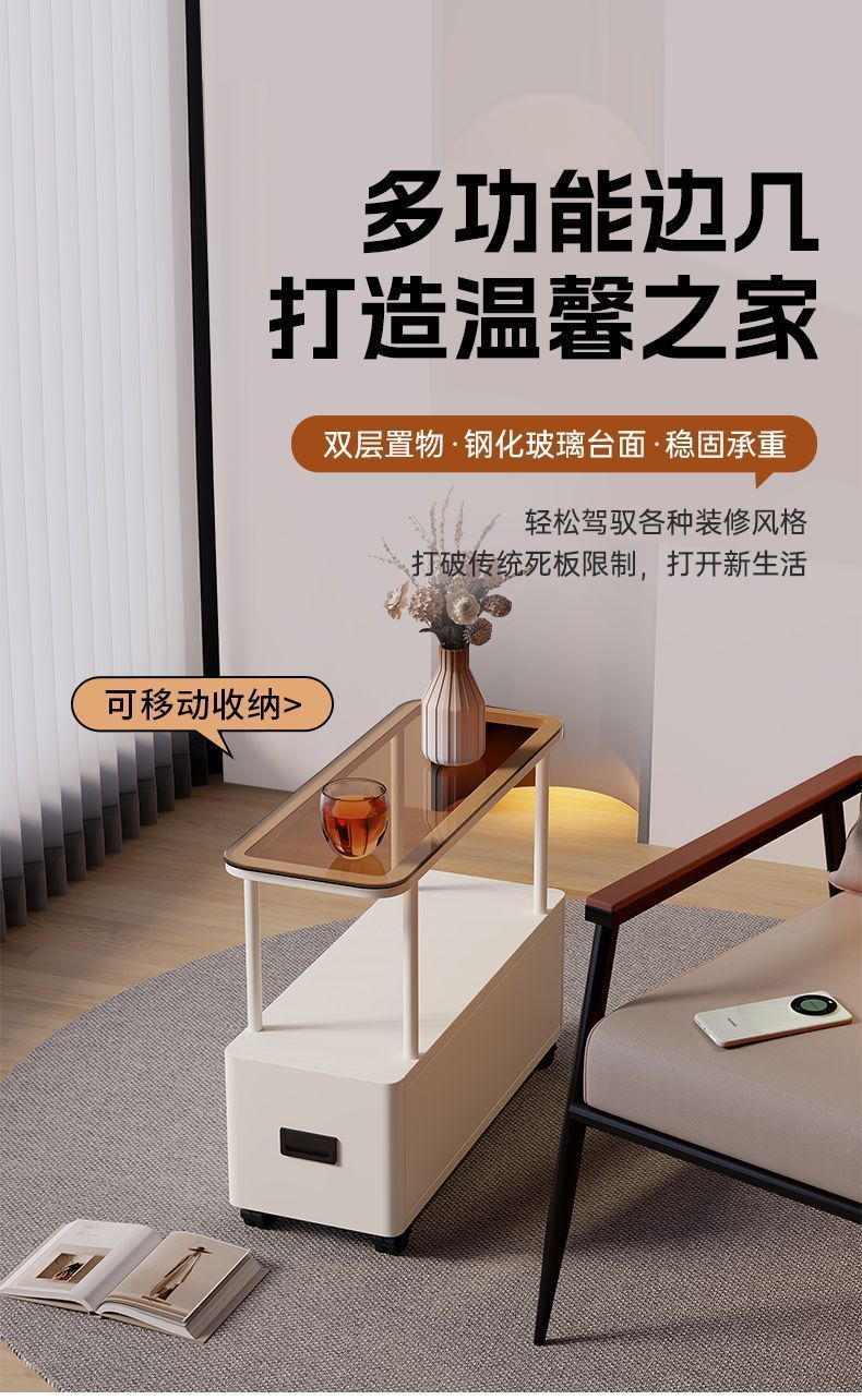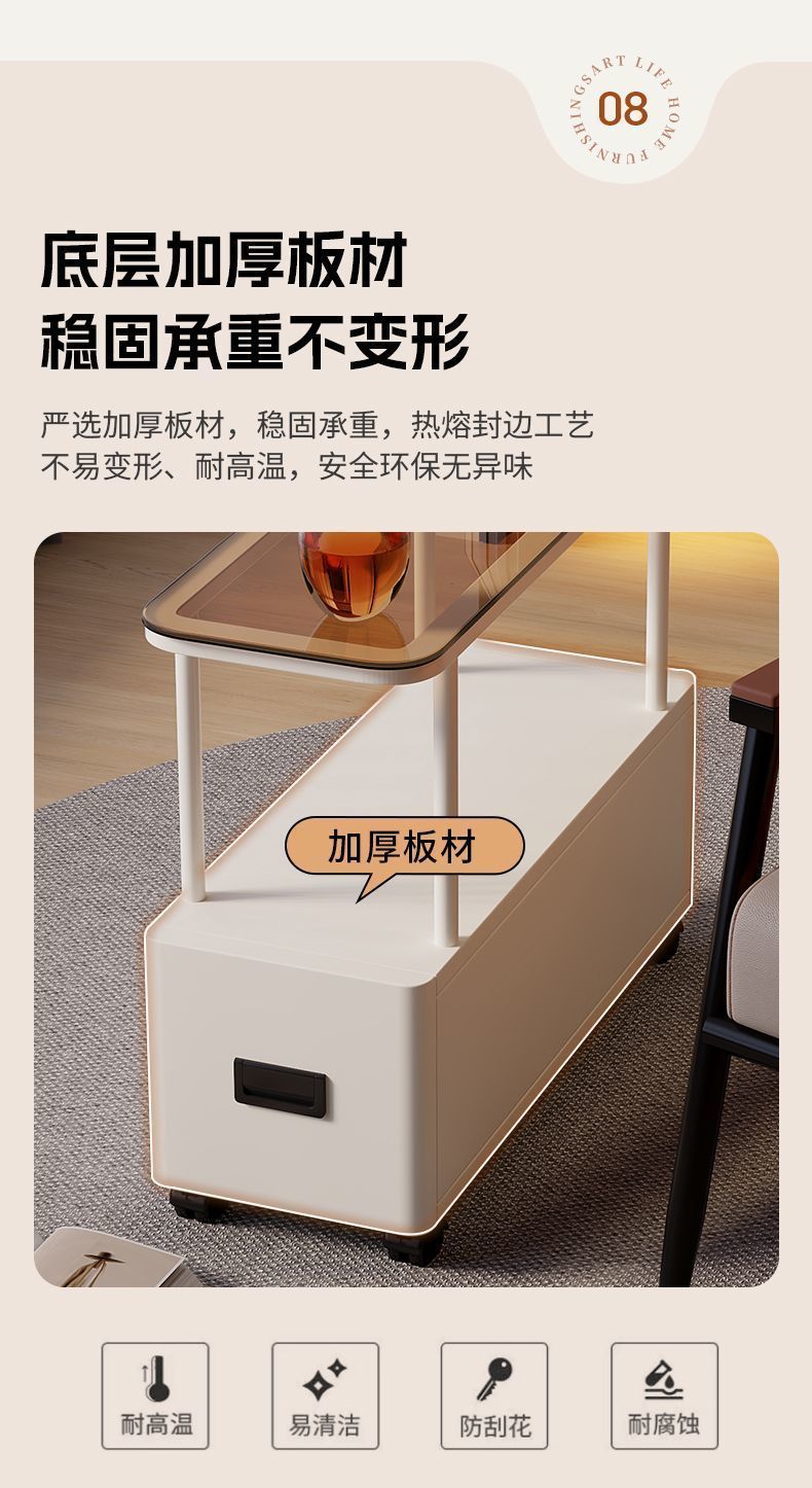 초슬림 사이드 테이블, 소형 티 테이블, 가벼운 고급 슬롯 수납 캐비닛, 소형 이동식 테이블, 침대 옆 수납 캐비닛