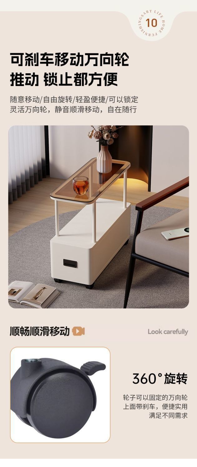 초슬림 사이드 테이블, 소형 티 테이블, 가벼운 고급 슬롯 수납 캐비닛, 소형 이동식 테이블, 침대 옆 수납 캐비닛스토어 가기