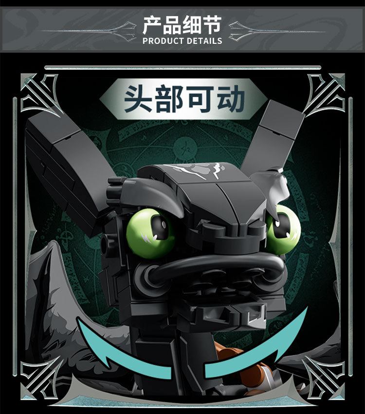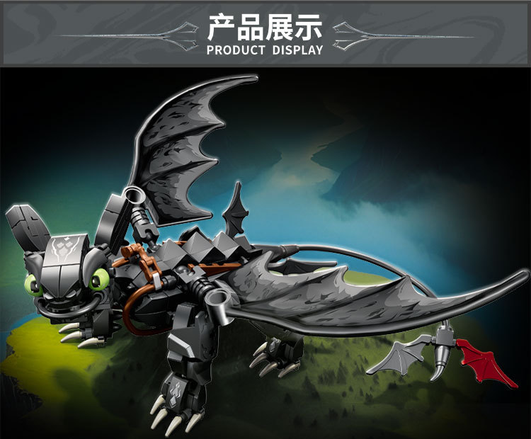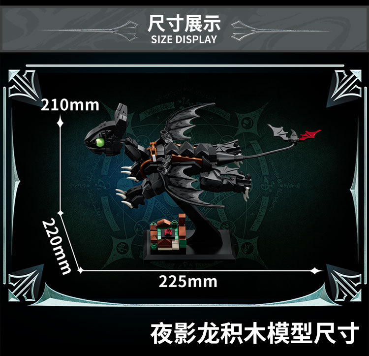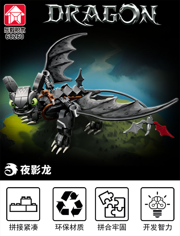 Leyi 68260 나이트 섀도우 드래곤 이빨없는 드래곤 훈련 나이트 섀도우 피규어 조립 교육 모델 어린이 국경 간 장난감