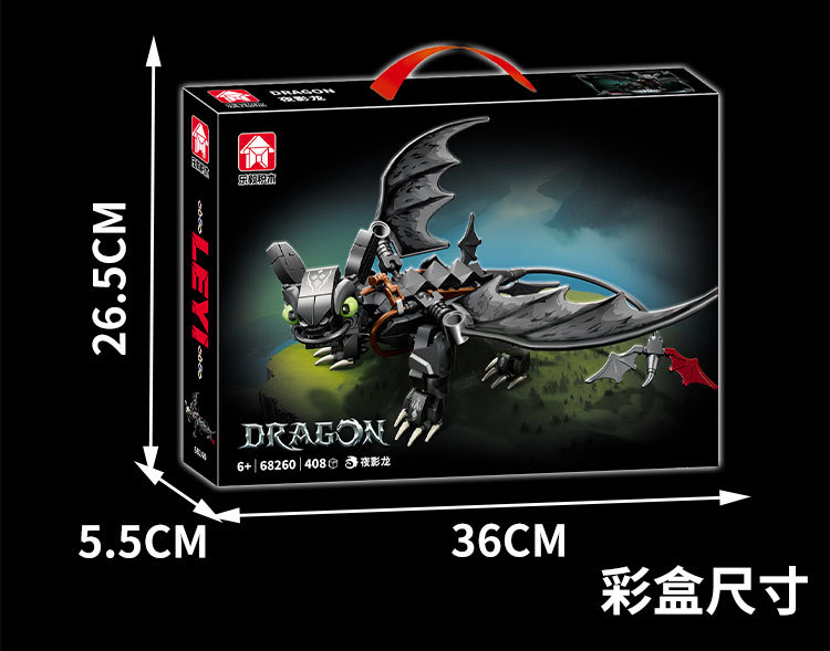 Leyi 68260 나이트 섀도우 드래곤 이빨없는 드래곤 훈련 나이트 섀도우 피규어 조립 교육 모델 어린이 국경 간 장난감스토어 가기
