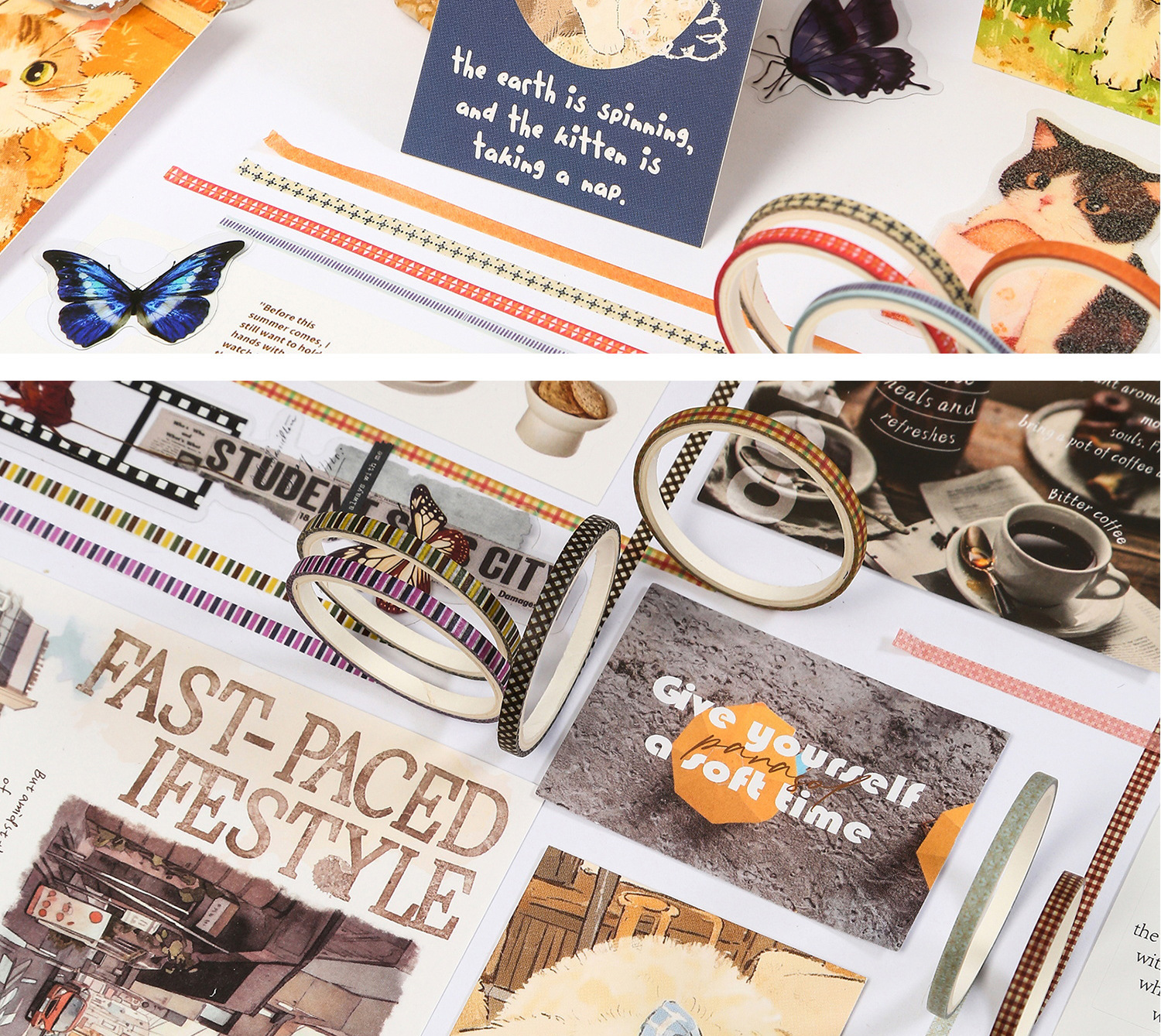 핸드북 테이프 스티커 및 종이 테이프 세트 10 롤 크로스 보더 컬러 인쇄 핸드북 소재 DIY 콜라주