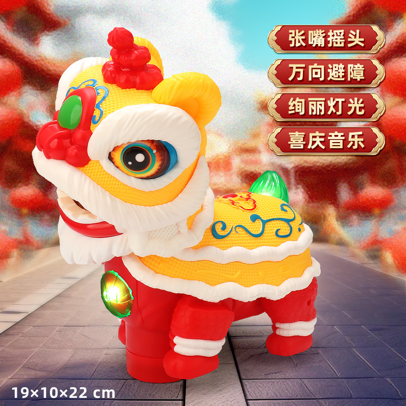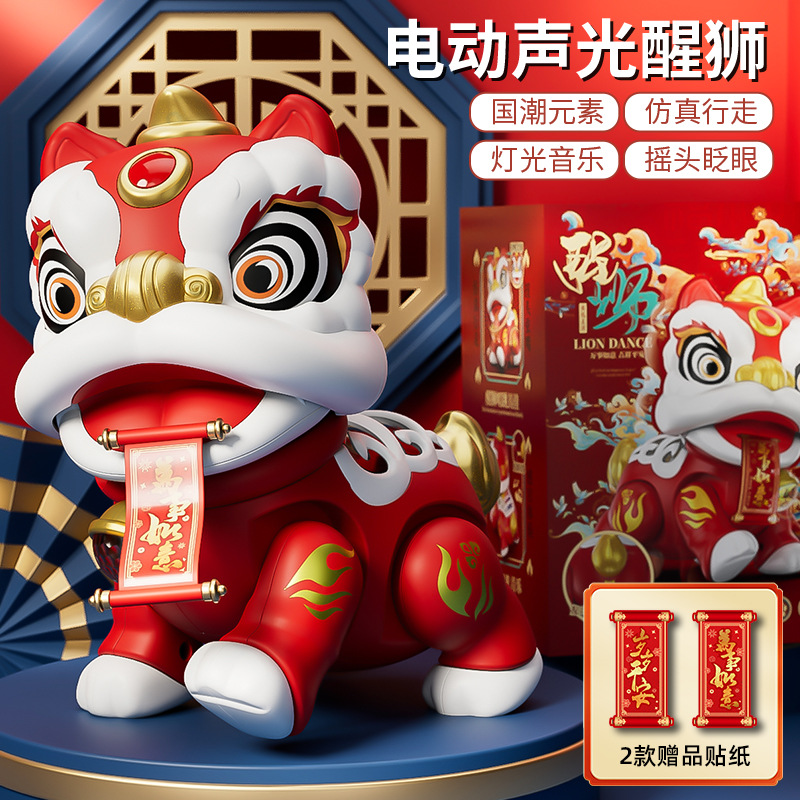 Guochao 사자 깨우기 전기 장난감은 머리를 흔들고 사자 춤을 춘다 새해 복 많이 받으세요 랜턴 어린이 휴대용 아기 사자 어린 소년