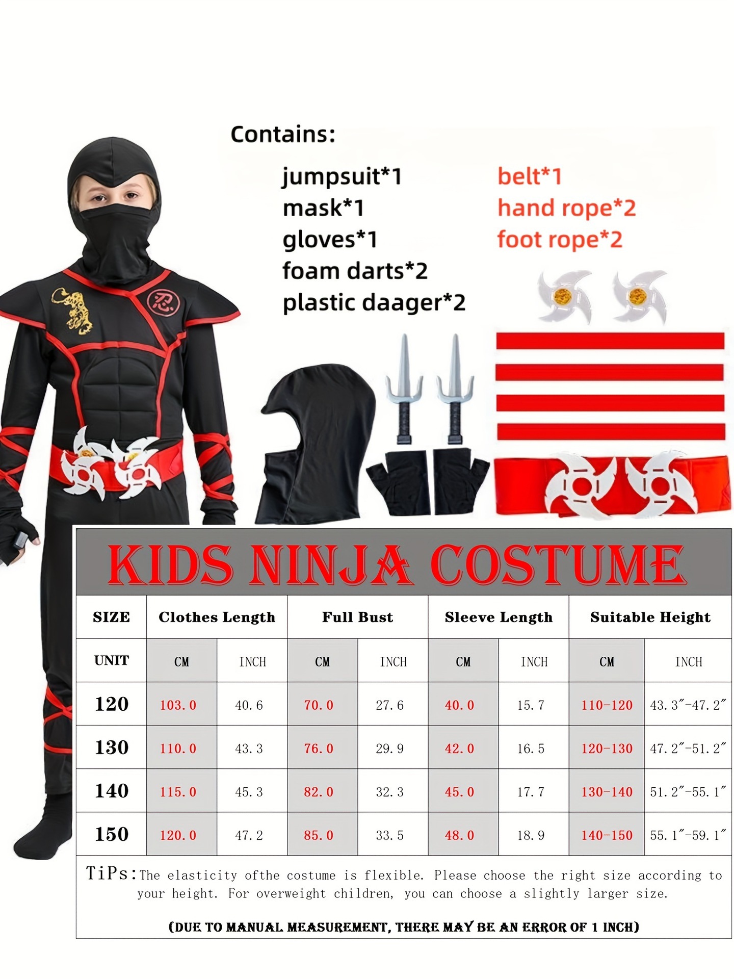 어린이용 닌자 의상 디럭스 닌자 점프수트 (닌자 포함)