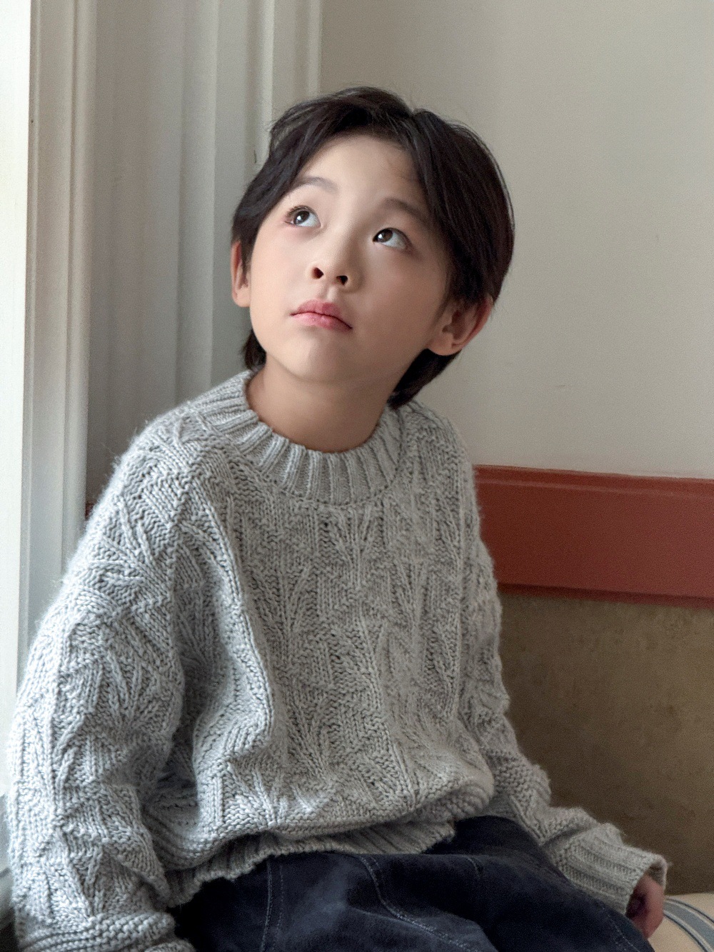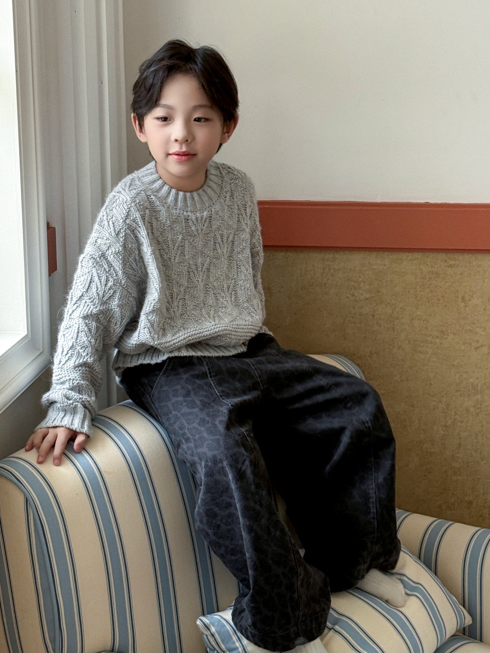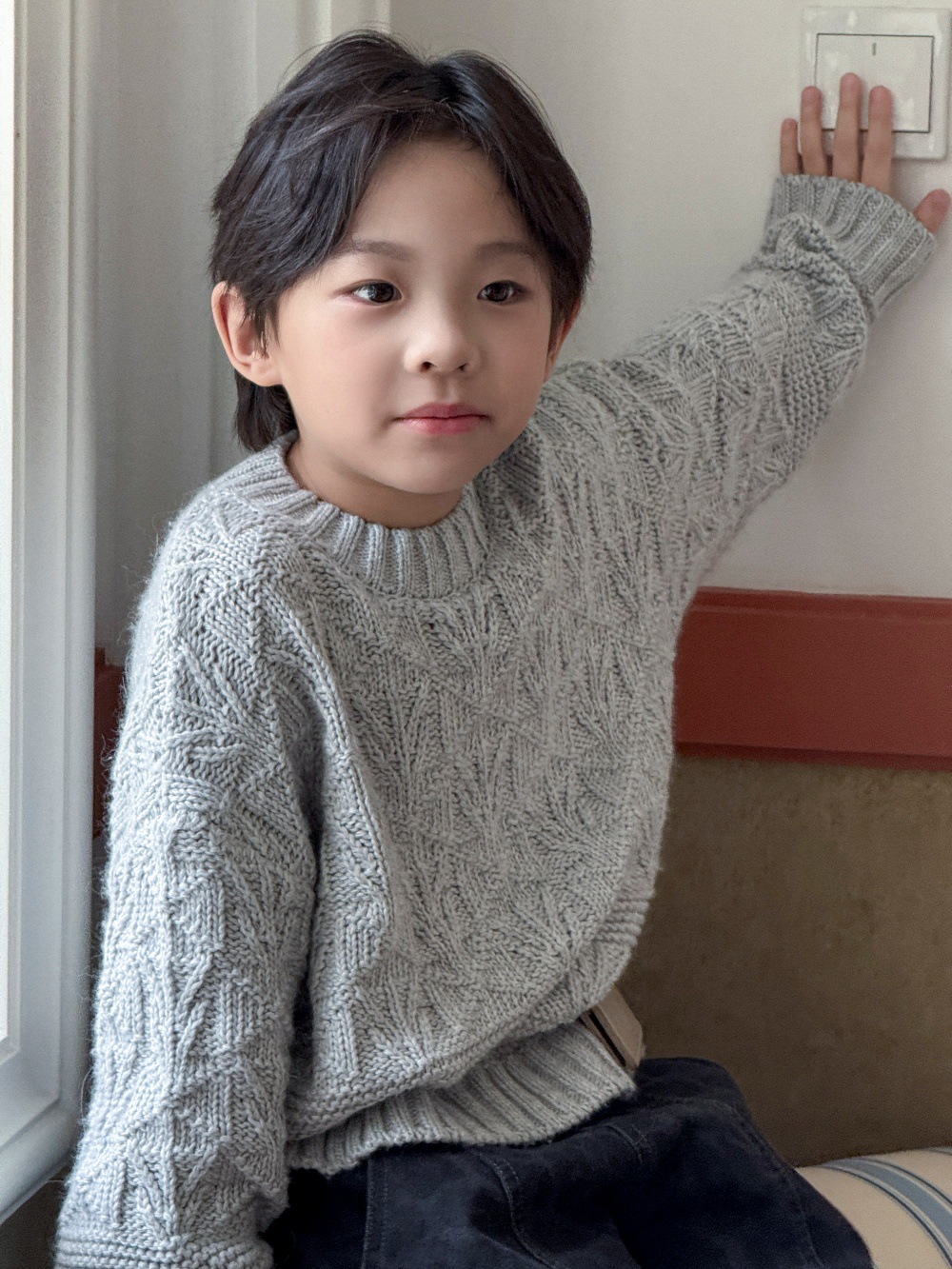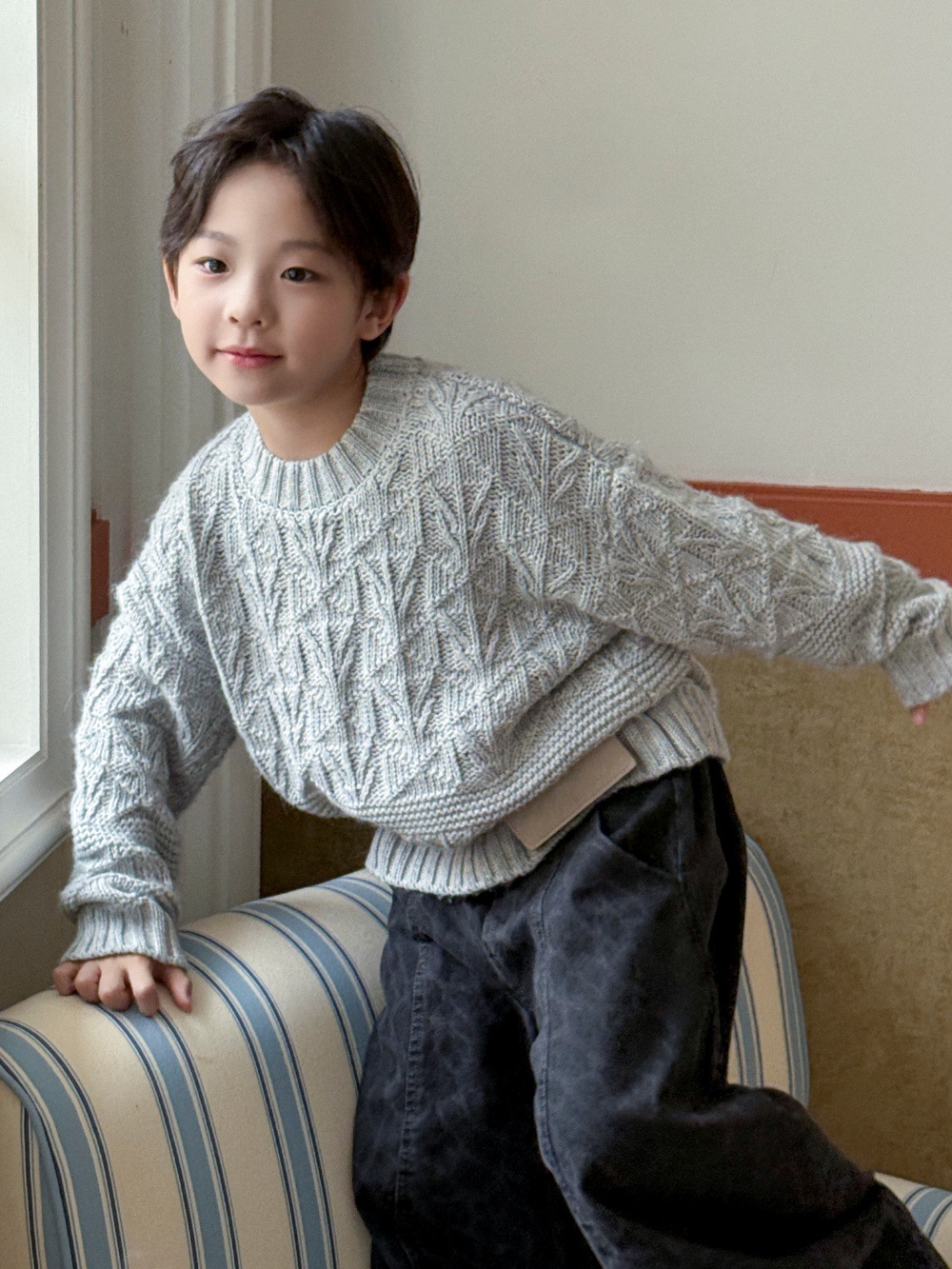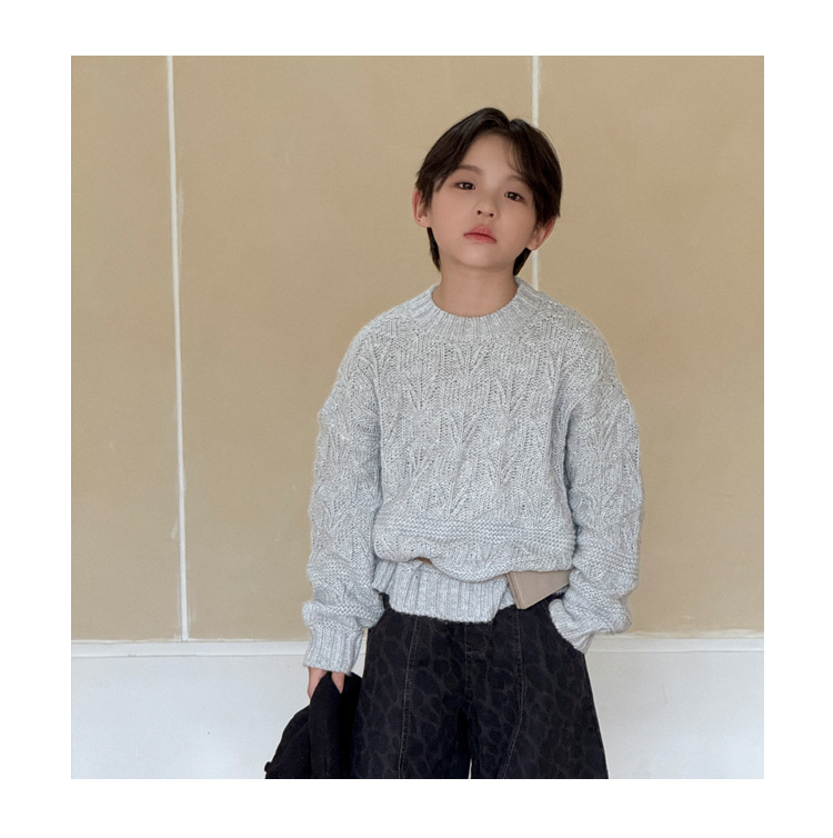 치즈와 고양이 아동복 소년 스웨터 2025 가을 새로운 한국 스타일 트위스트 패턴 느슨한 라운드 넥 풀오버 유행 어린이스토어 가기