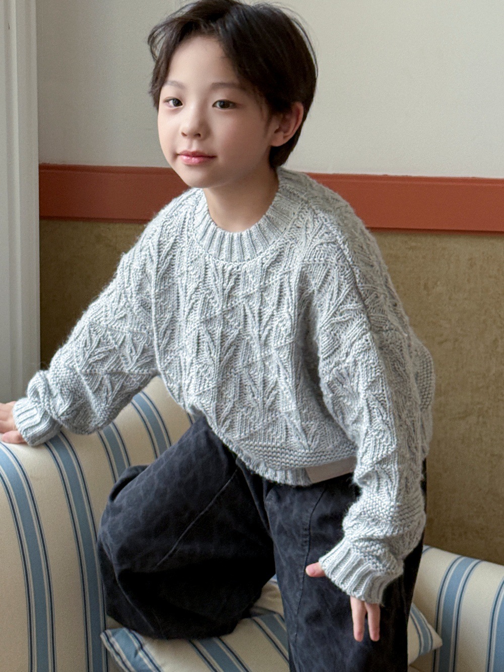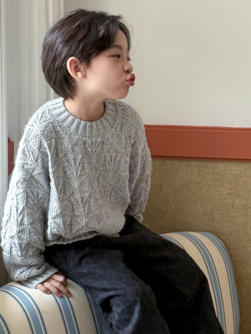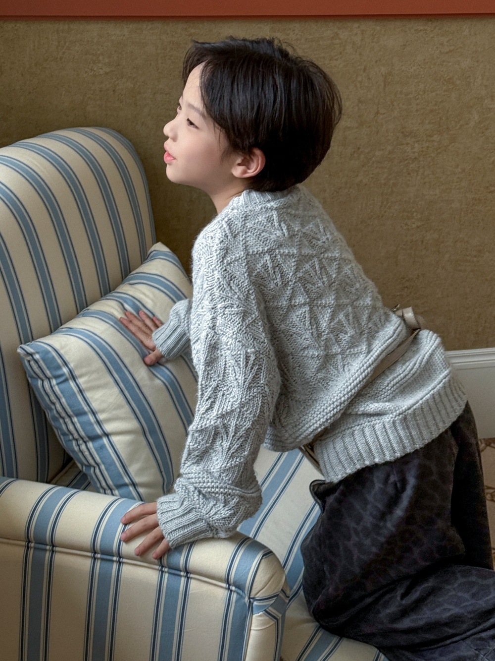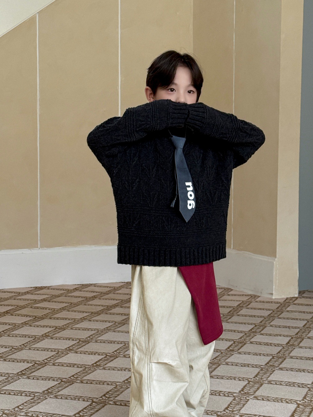 치즈와 고양이 아동복 소년 스웨터 2025 가을 새로운 한국 스타일 트위스트 패턴 느슨한 라운드 넥 풀오버 유행 어린이스토어 가기