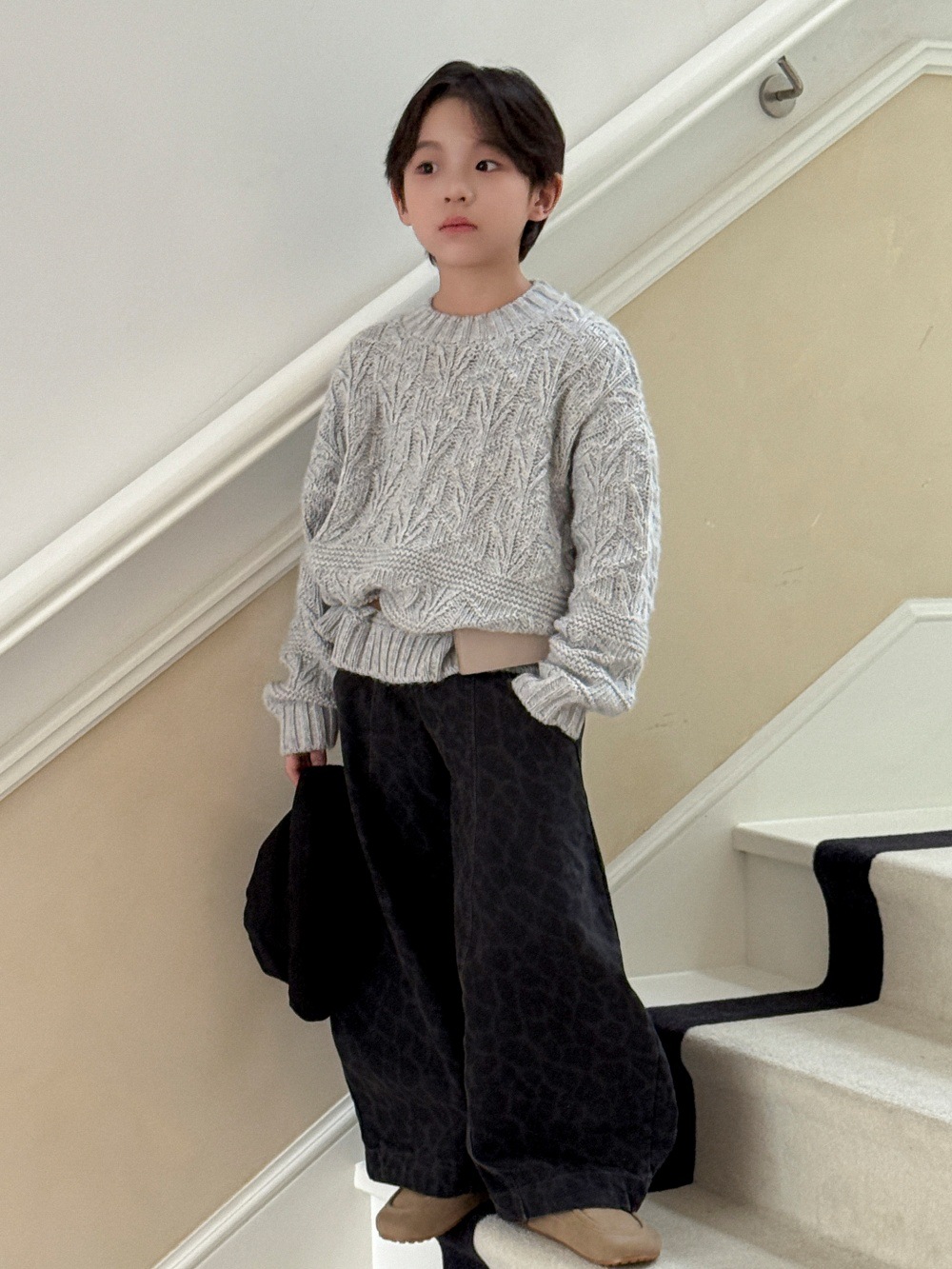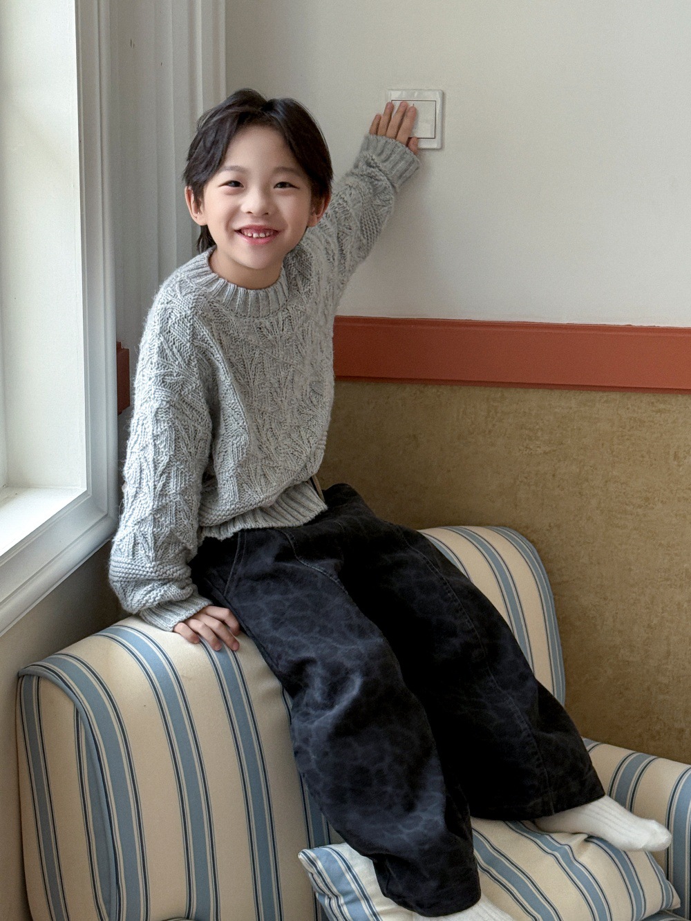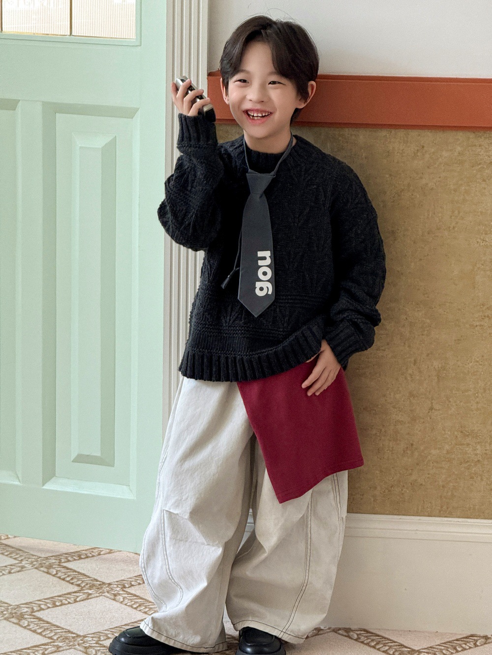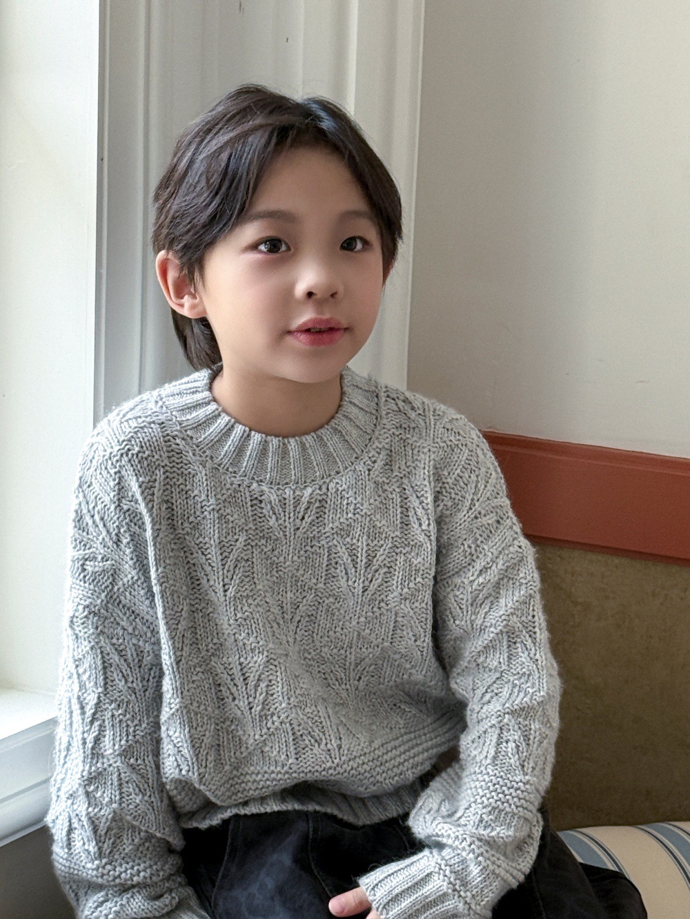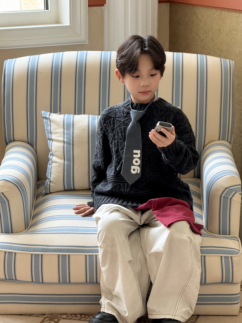 치즈와 고양이 아동복 소년 스웨터 2025 가을 새로운 한국 스타일 트위스트 패턴 느슨한 라운드 넥 풀오버 유행 어린이스토어 가기