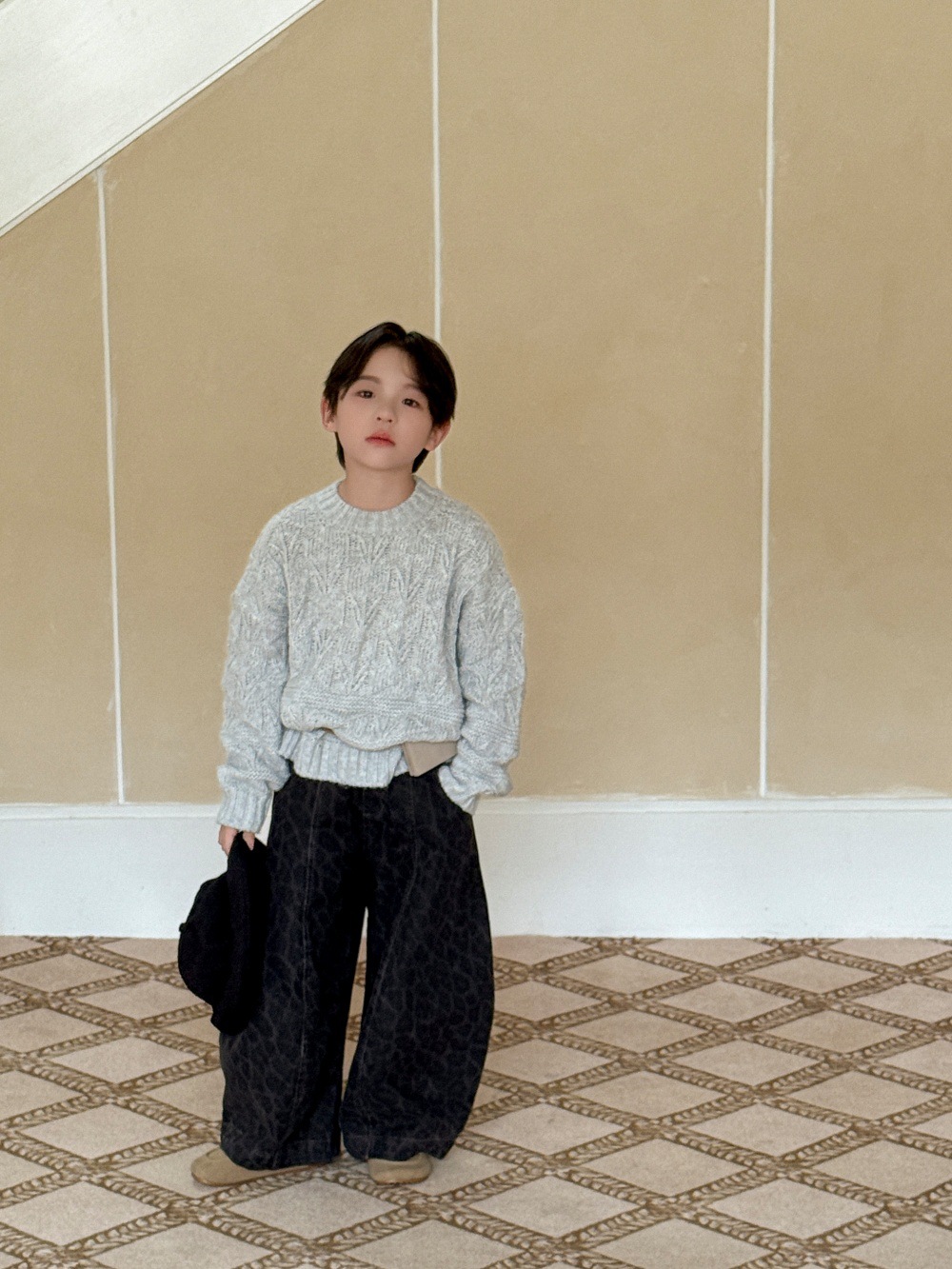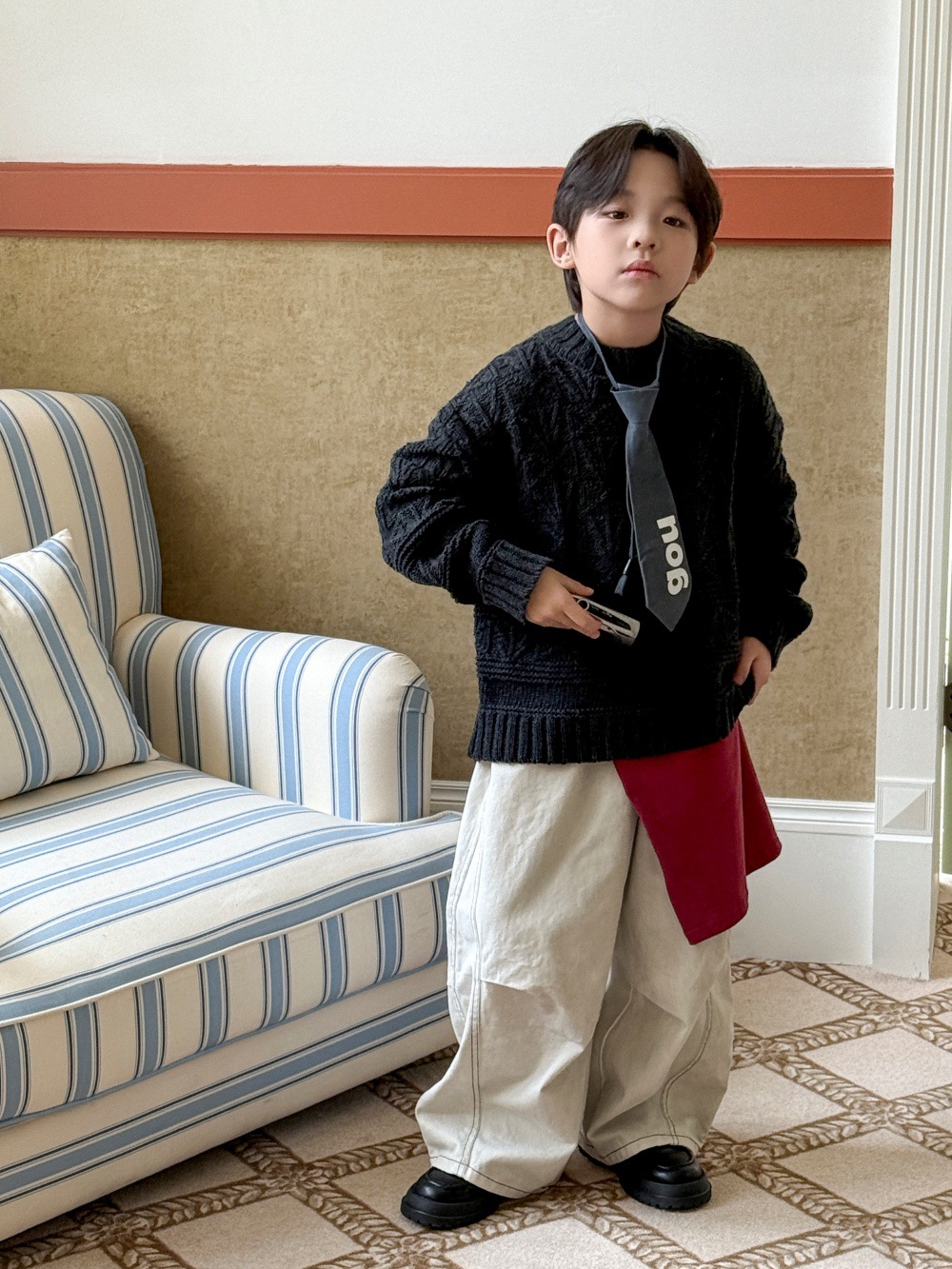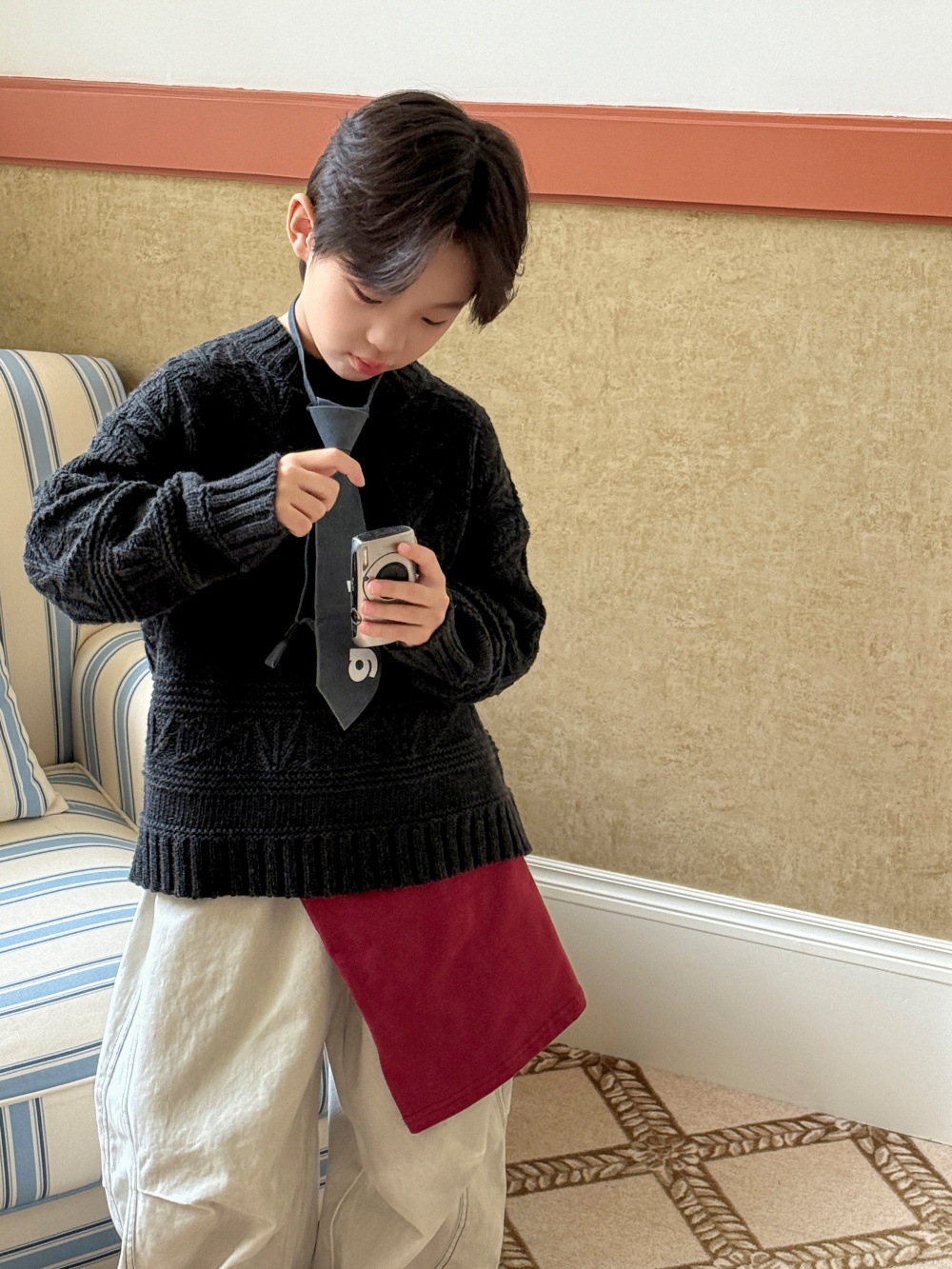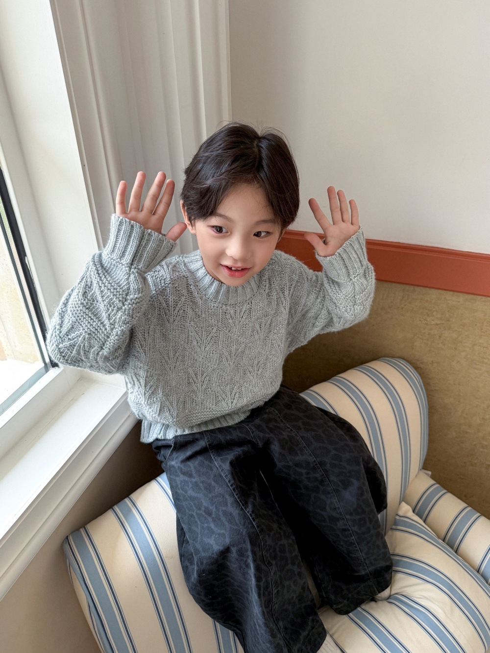 치즈와 고양이 아동복 소년 스웨터 2025 가을 새로운 한국 스타일 트위스트 패턴 느슨한 라운드 넥 풀오버 유행 어린이스토어 가기