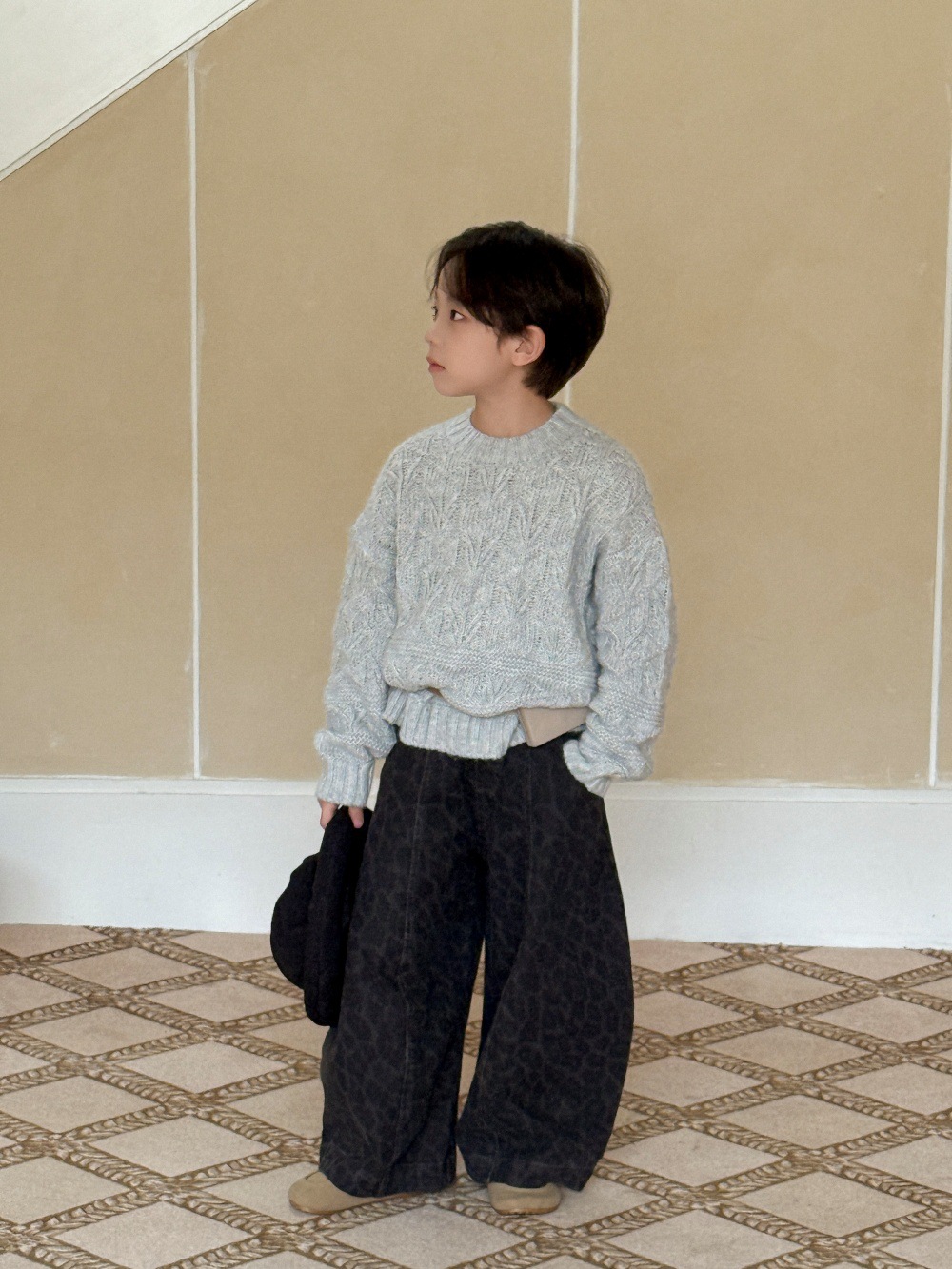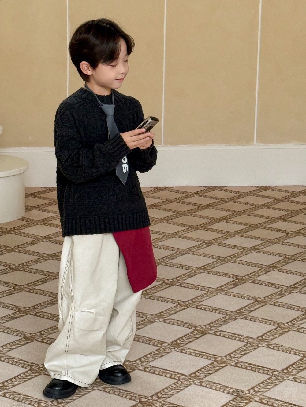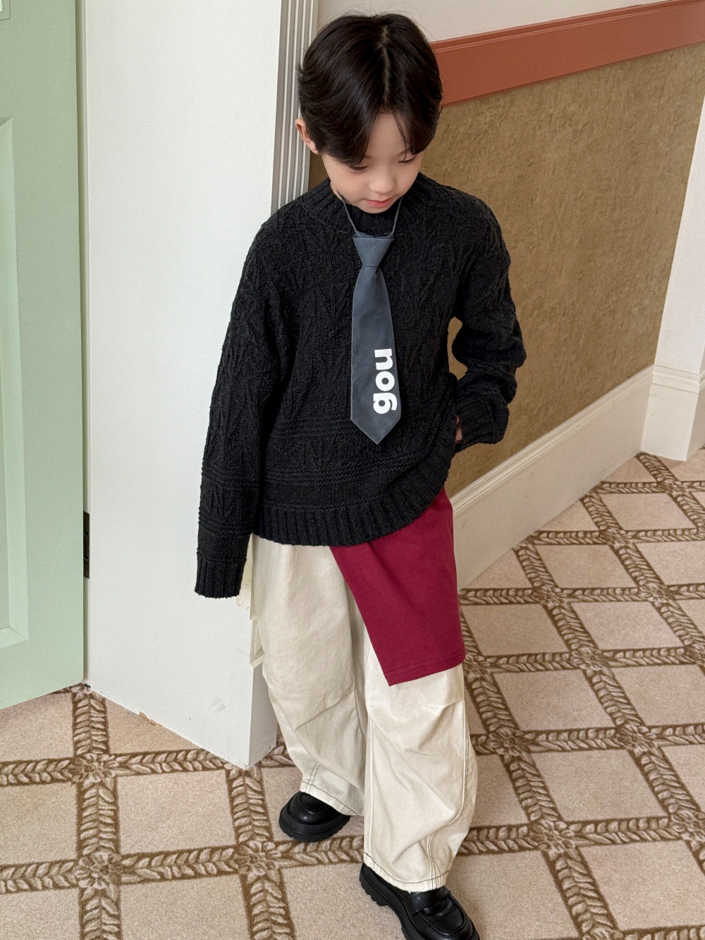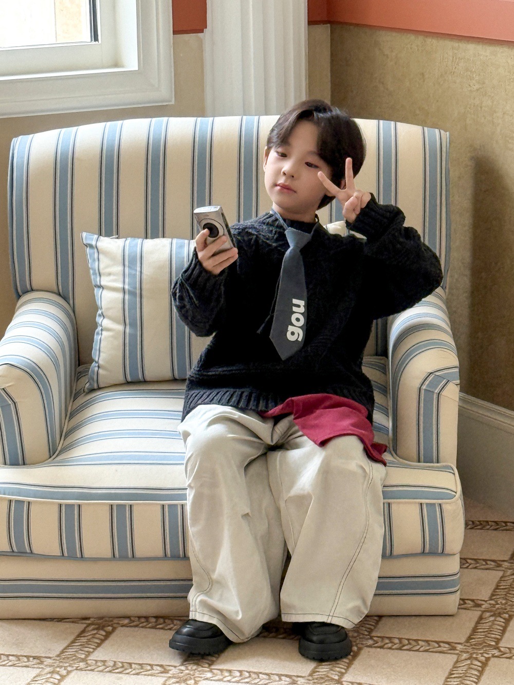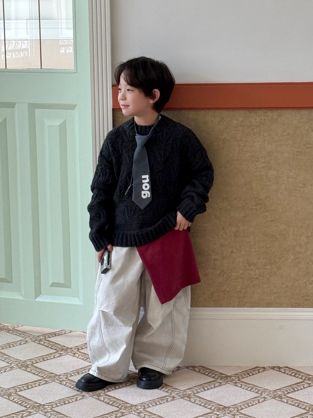 치즈와 고양이 아동복 소년 스웨터 2025 가을 새로운 한국 스타일 트위스트 패턴 느슨한 라운드 넥 풀오버 유행 어린이스토어 가기