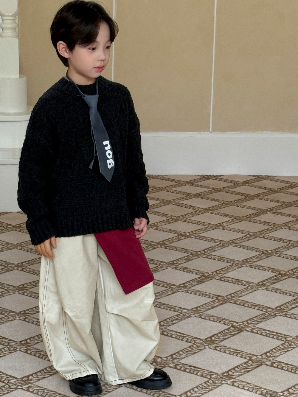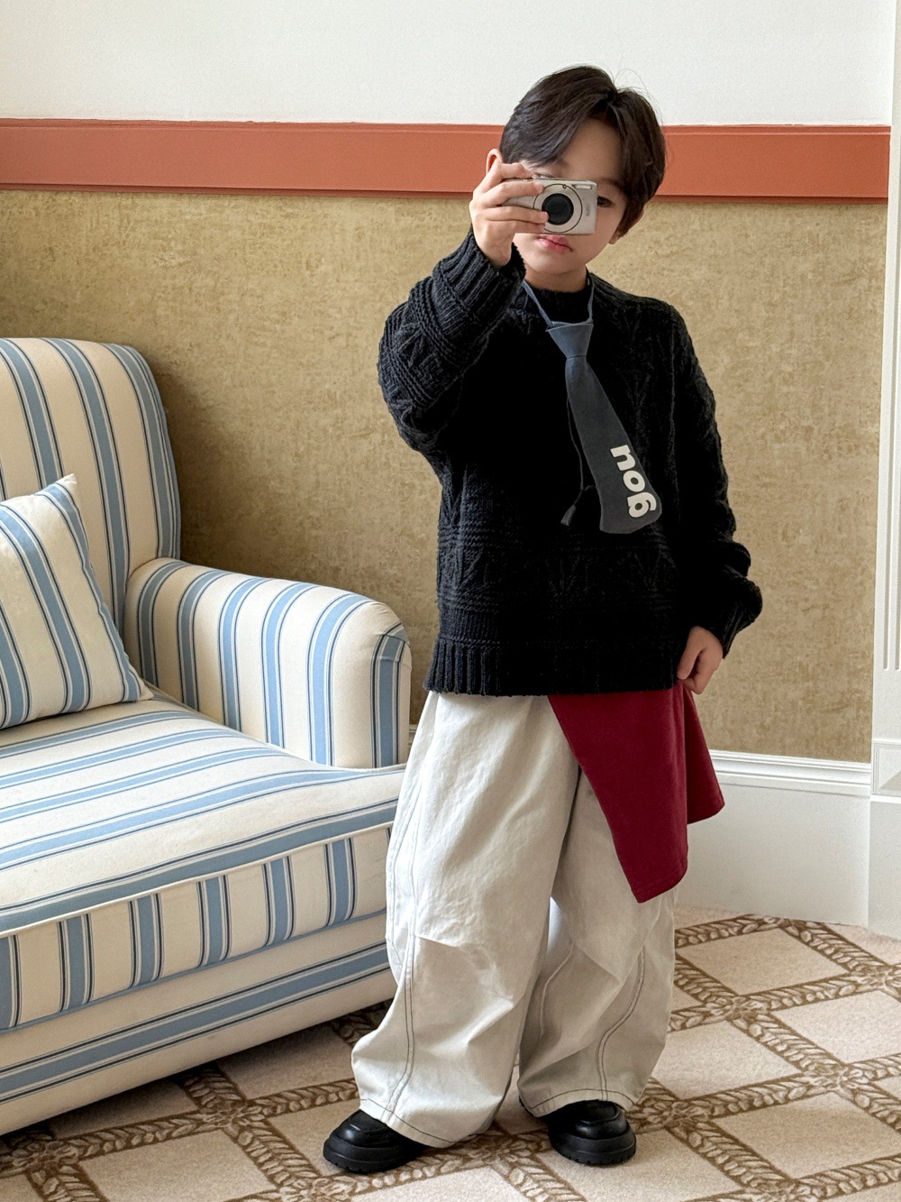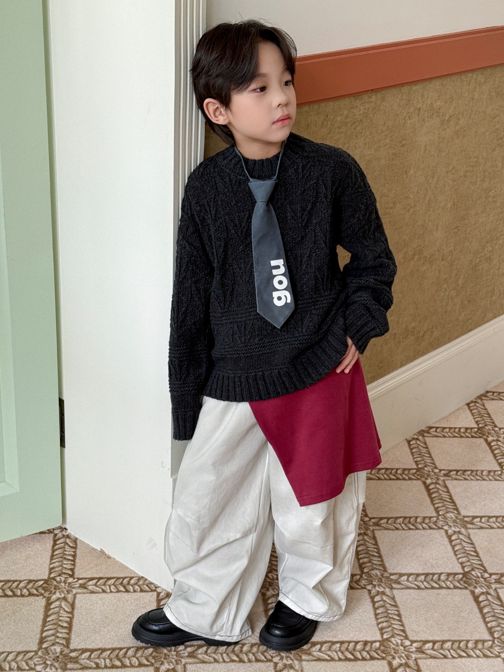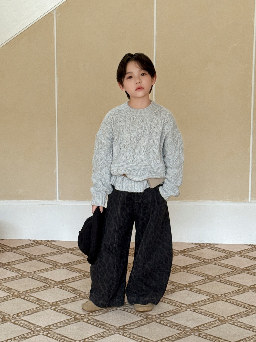 치즈와 고양이 아동복 소년 스웨터 2025 가을 새로운 한국 스타일 트위스트 패턴 느슨한 라운드 넥 풀오버 유행 어린이스토어 가기