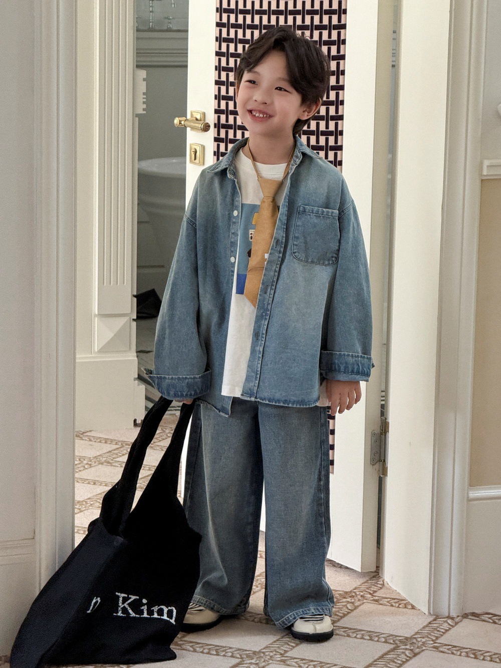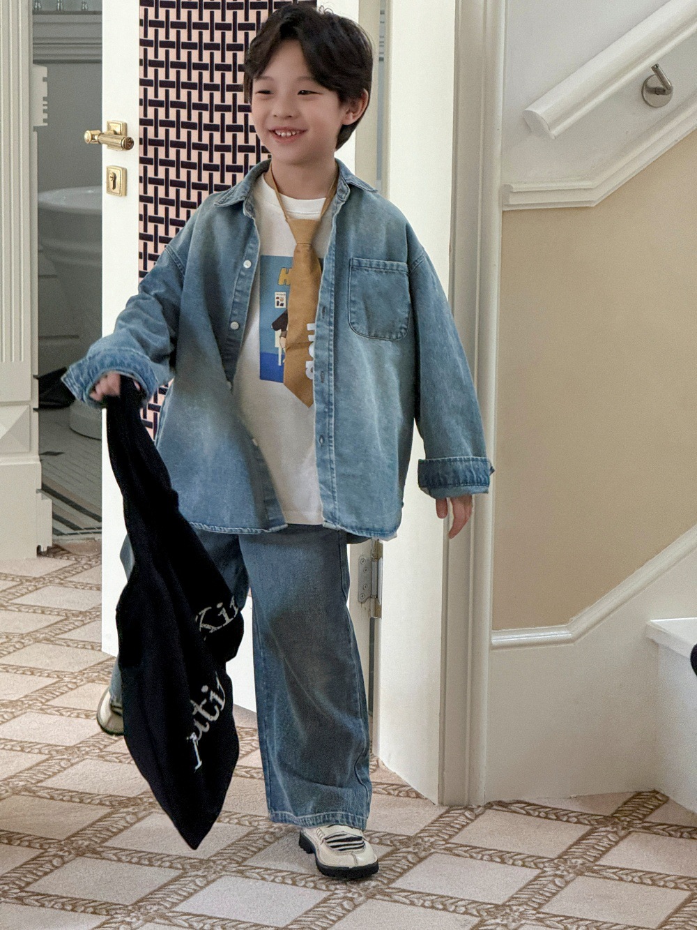 치즈와 야옹 아동복 소년 청바지 2025 가을 새 소년 스트레이트 바지 잘 생긴 다목적 캐주얼 바지스토어 가기