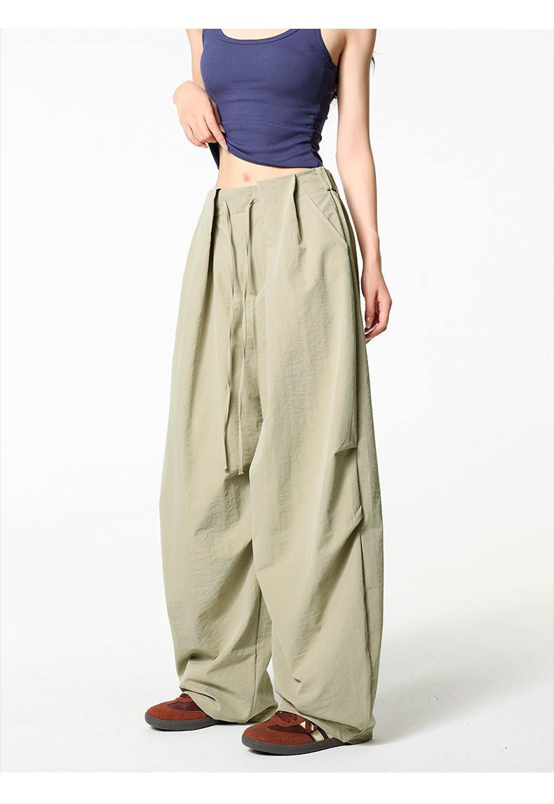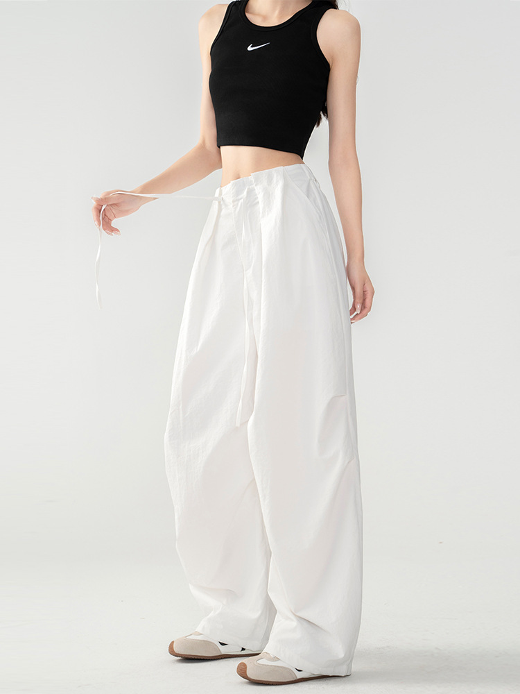 여름 여성용 인터넷 연예인 와이드 레그 캐주얼 팬츠 얇은 하이 웨이스트 슬리밍 가위 팬츠 등산 야외 풍선 바지 디자인
