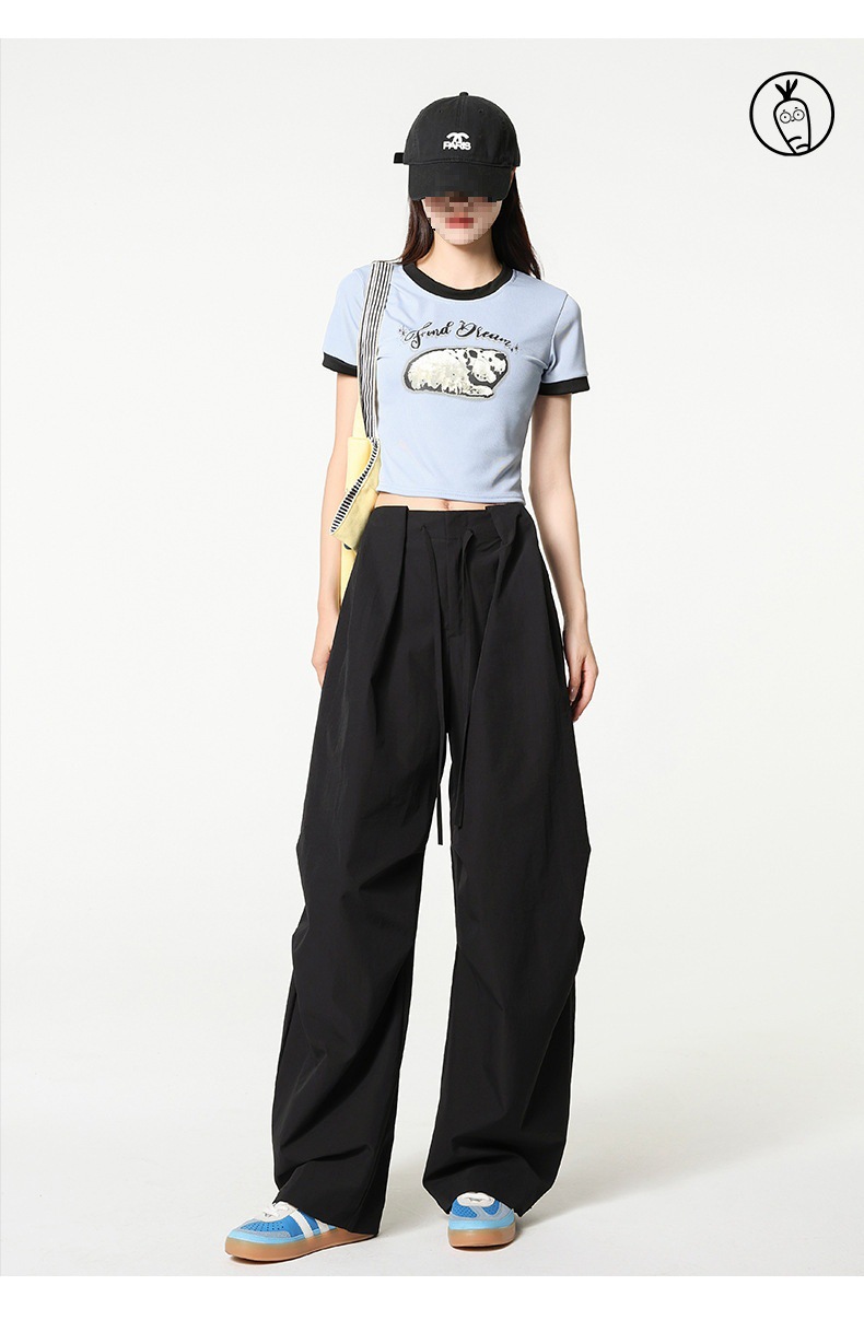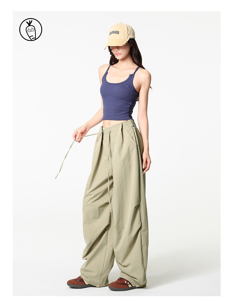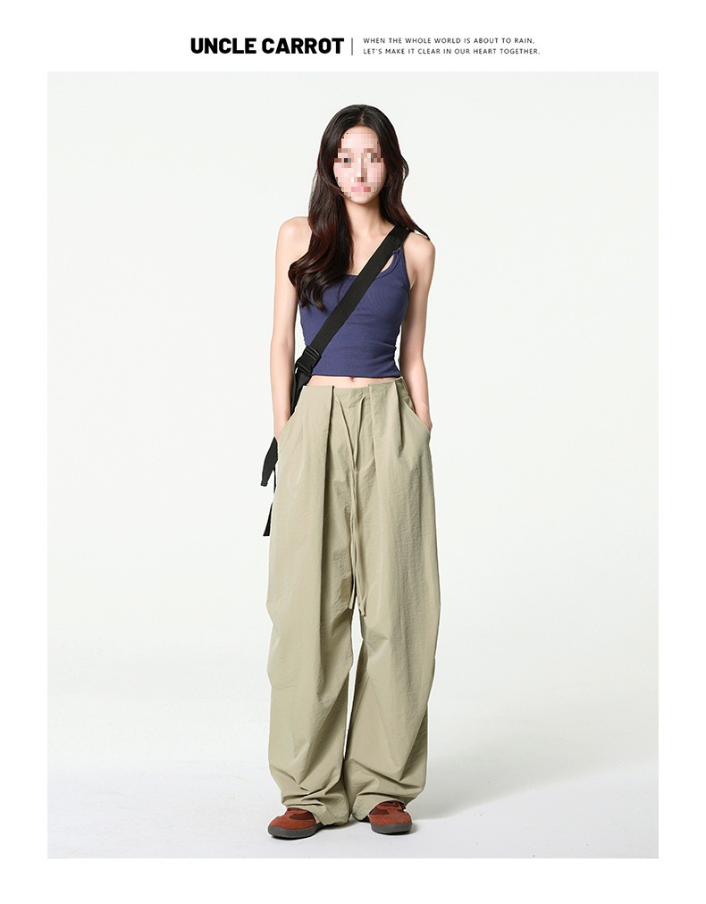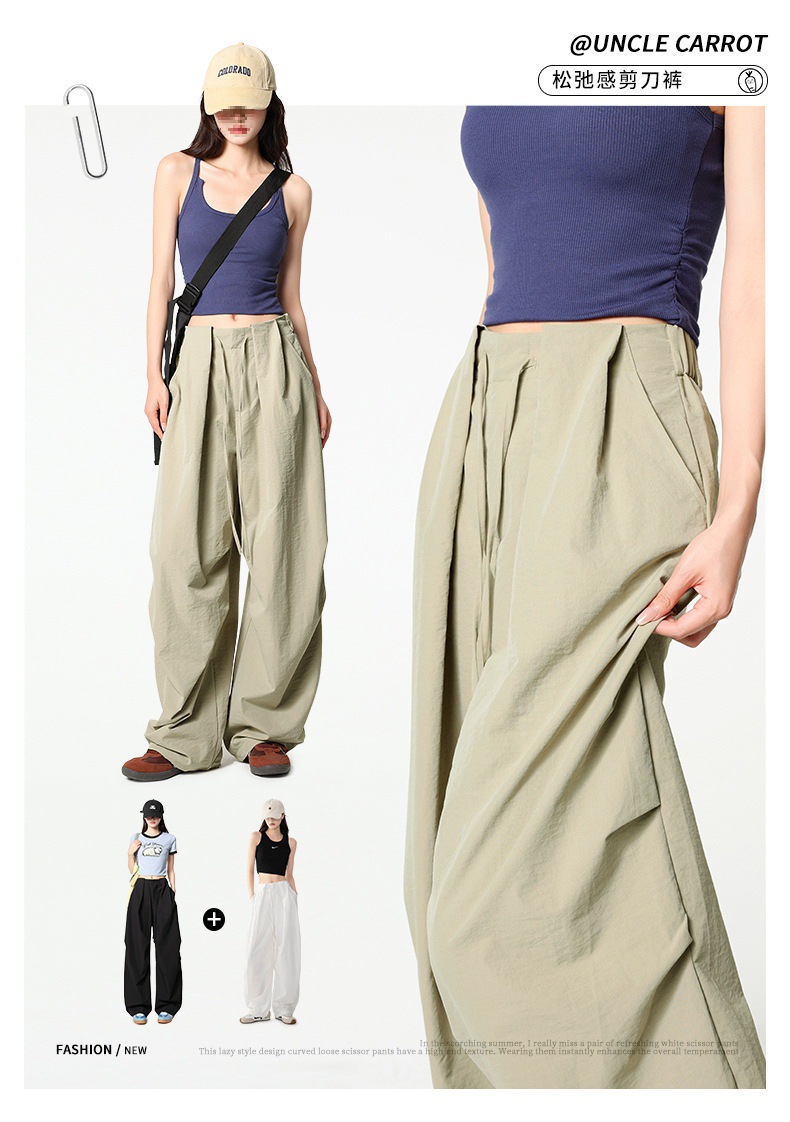 여름 여성용 인터넷 연예인 와이드 레그 캐주얼 팬츠 얇은 하이 웨이스트 슬리밍 가위 팬츠 등산 야외 풍선 바지 디자인스토어 가기