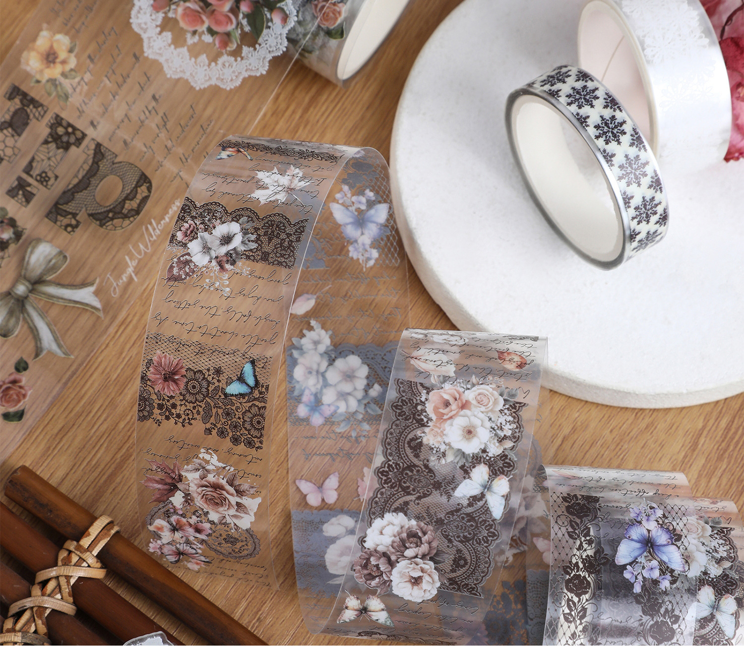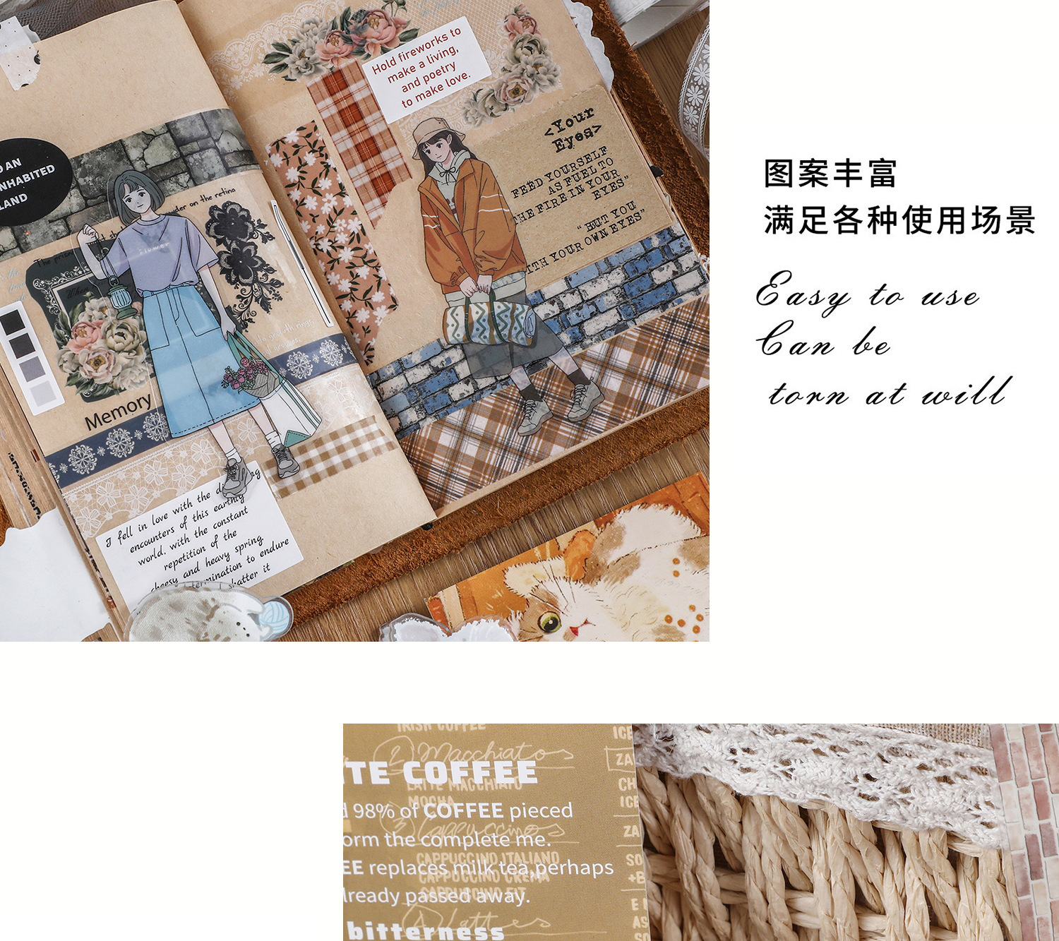 레트로 와시 테이프 전체 롤 박스 세트 크로스 보더 핸드북 일기 테두리 장식 스티커 컬러 핸드북 테이프