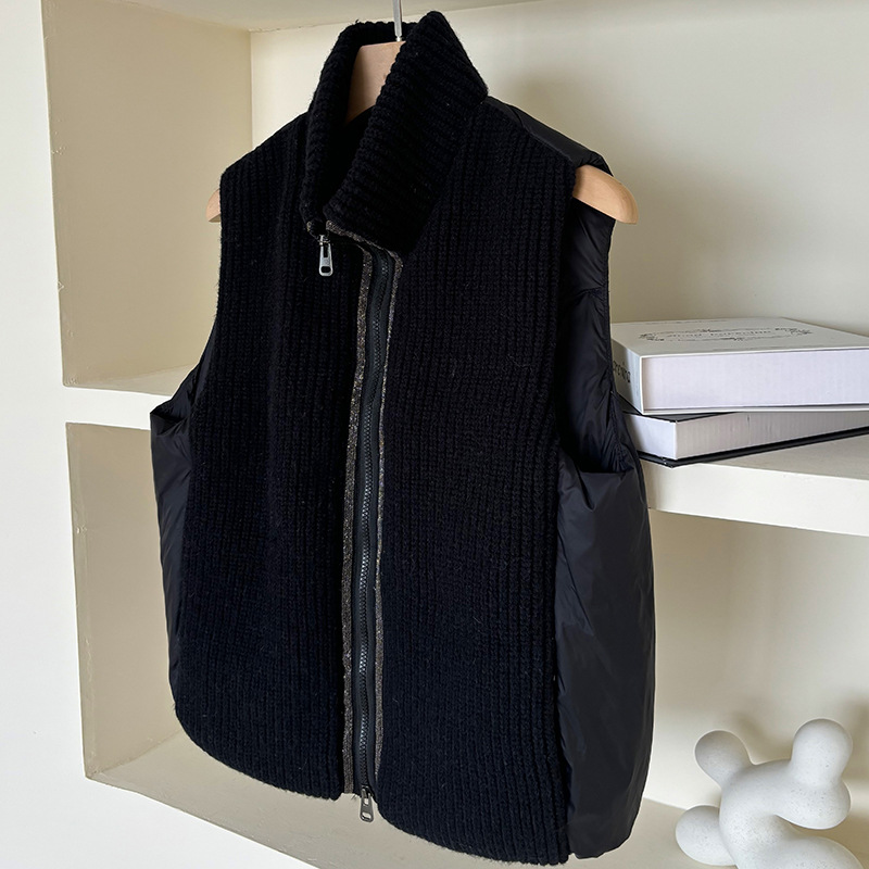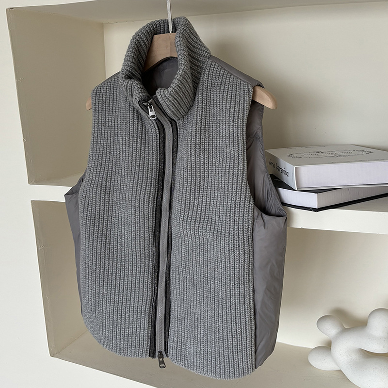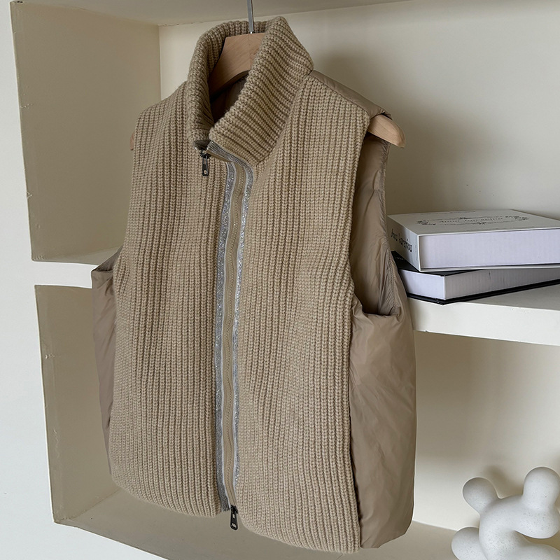 국경 간 가을, 겨울 여성을위한 새로운 고급 화이트 오리 다운 재킷 조끼 두꺼운 니트 스플 라이스 조끼 재킷 유행스토어 가기