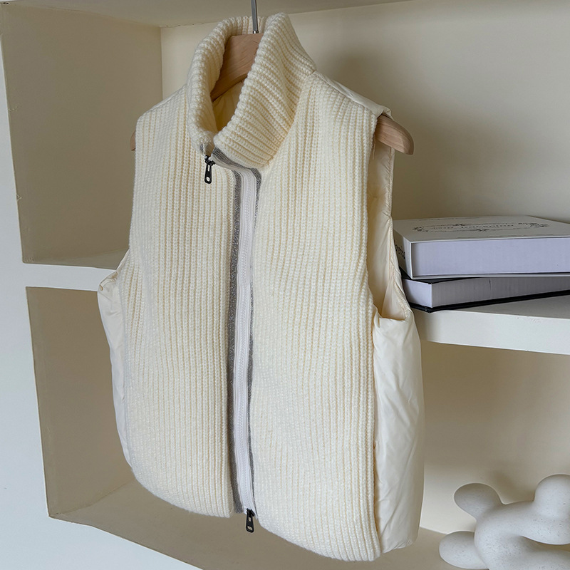 국경 간 가을, 겨울 여성을위한 새로운 고급 화이트 오리 다운 재킷 조끼 두꺼운 니트 스플 라이스 조끼 재킷 유행