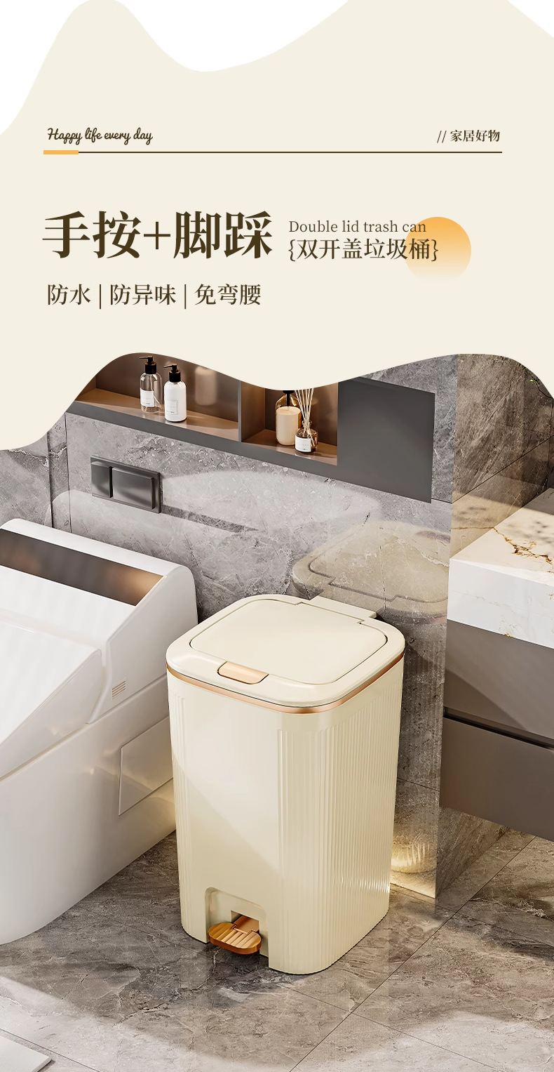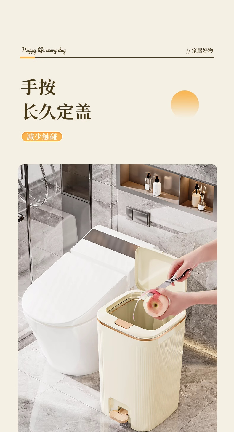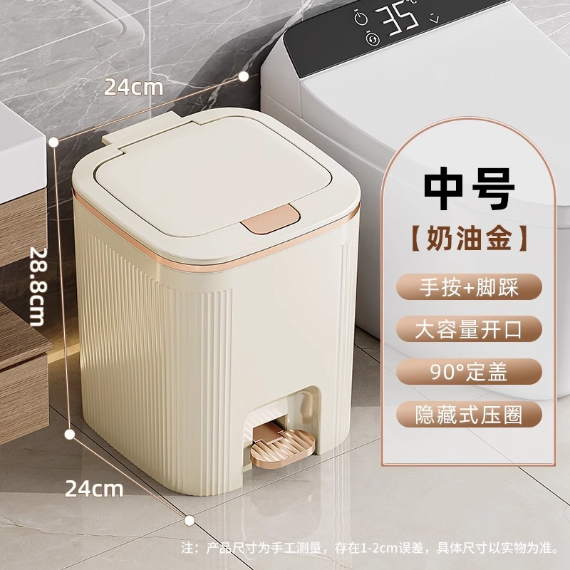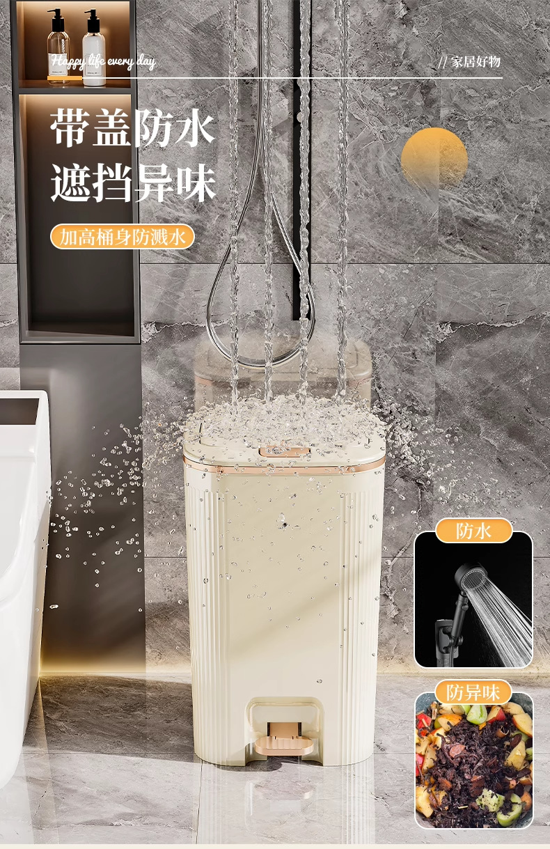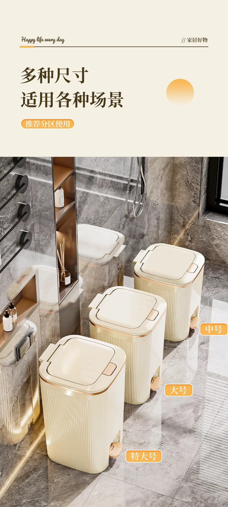 가정용 가벼운 고급 쓰레기통 2025 뚜껑이 있는 새로운 스타일, 고급스러운 거실, 대용량 주방, 욕실 및 화장실스토어 가기