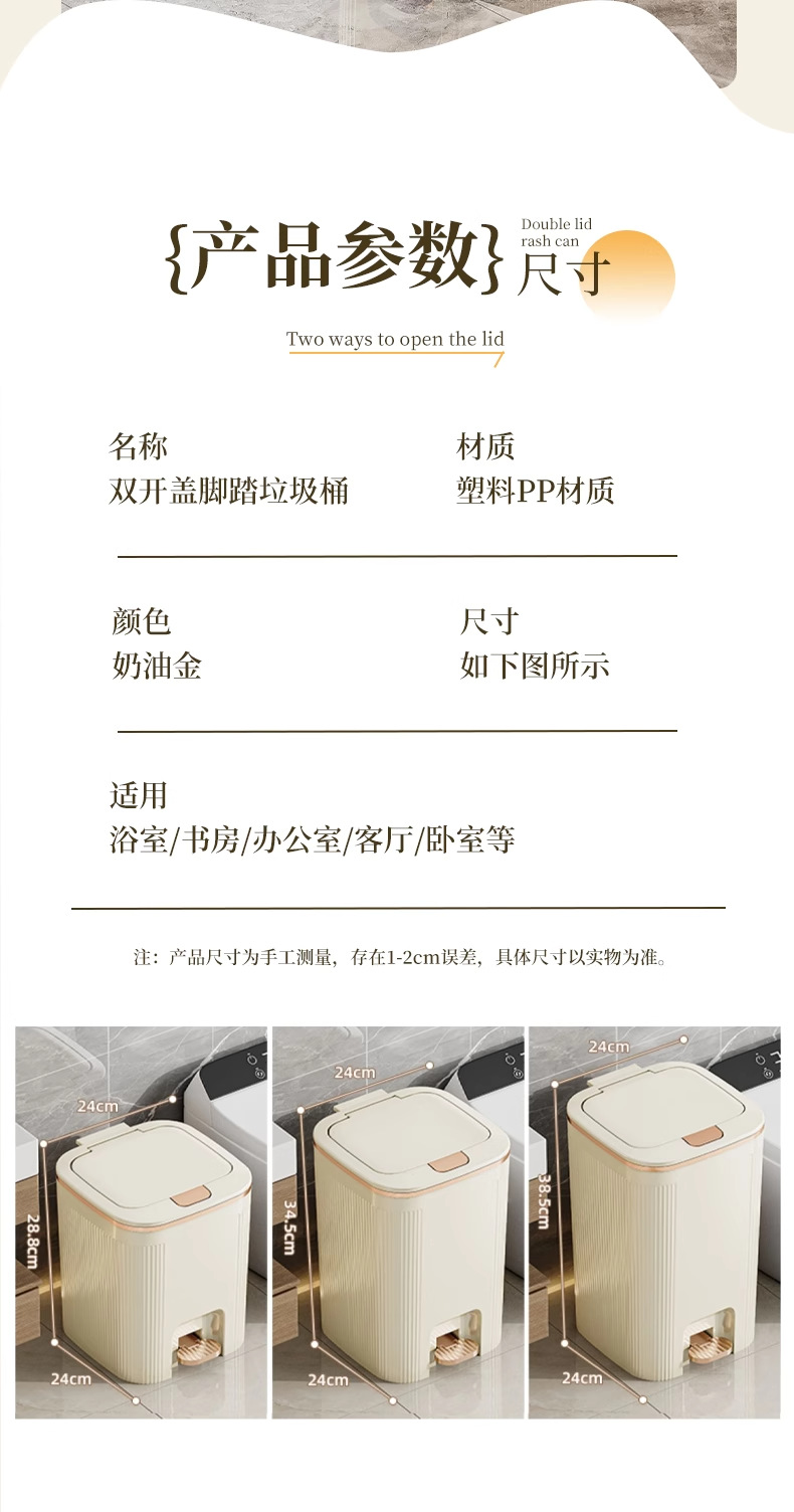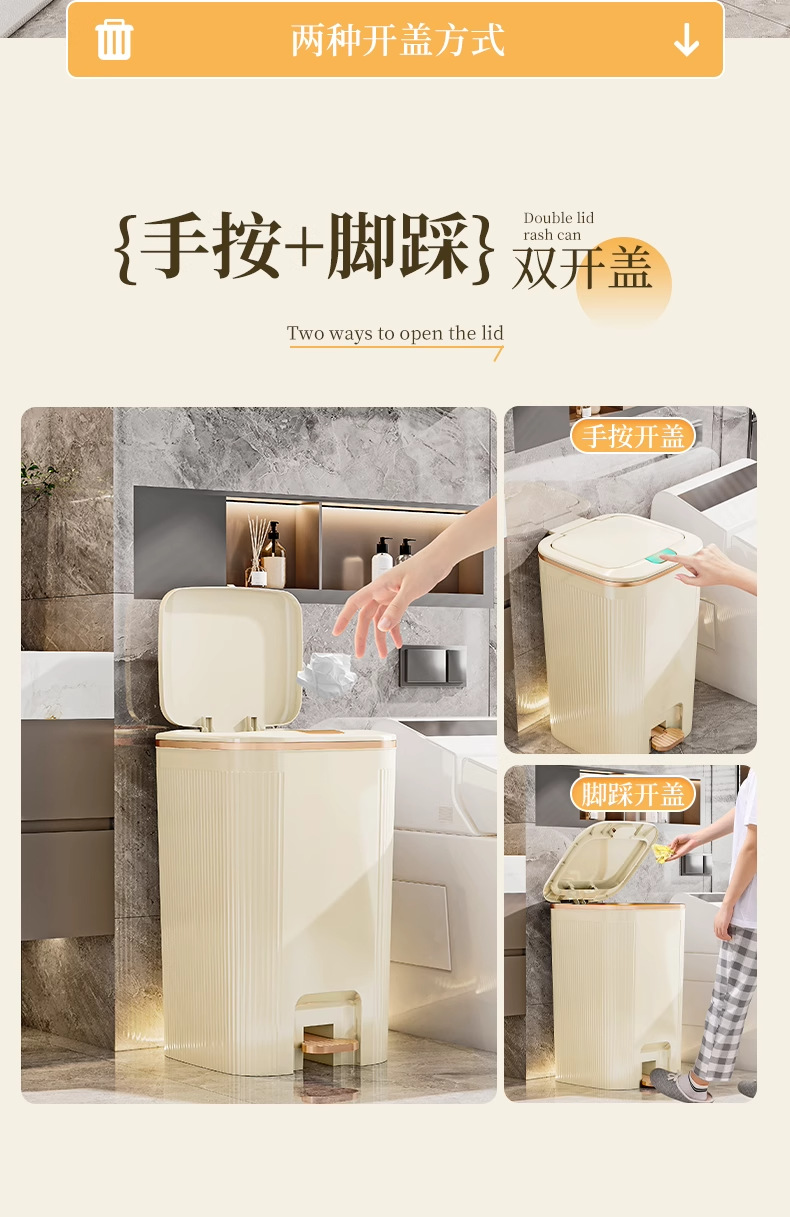 가정용 가벼운 고급 쓰레기통 2025 뚜껑이 있는 새로운 스타일, 고급스러운 거실, 대용량 주방, 욕실 및 화장실
