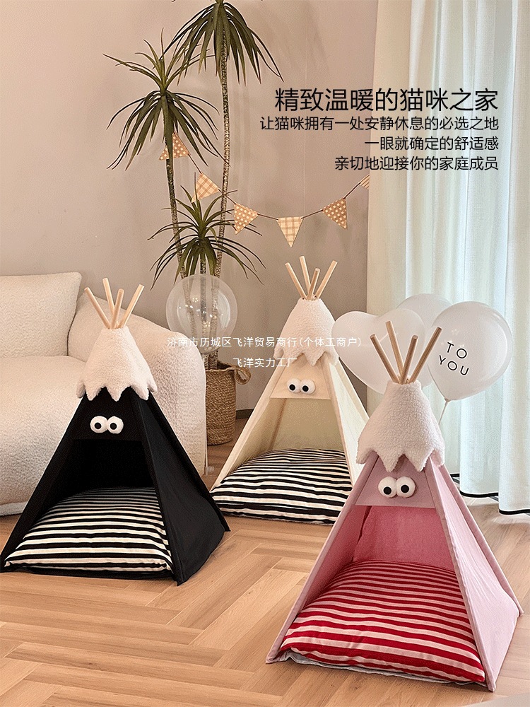DUNDUN 텐트 고양이 개집, 사계절 모두 사용 가능, 반밀폐형, 탈부착 및 세척 가능, 고급스러운 고양이 개집, 애완동물 용품