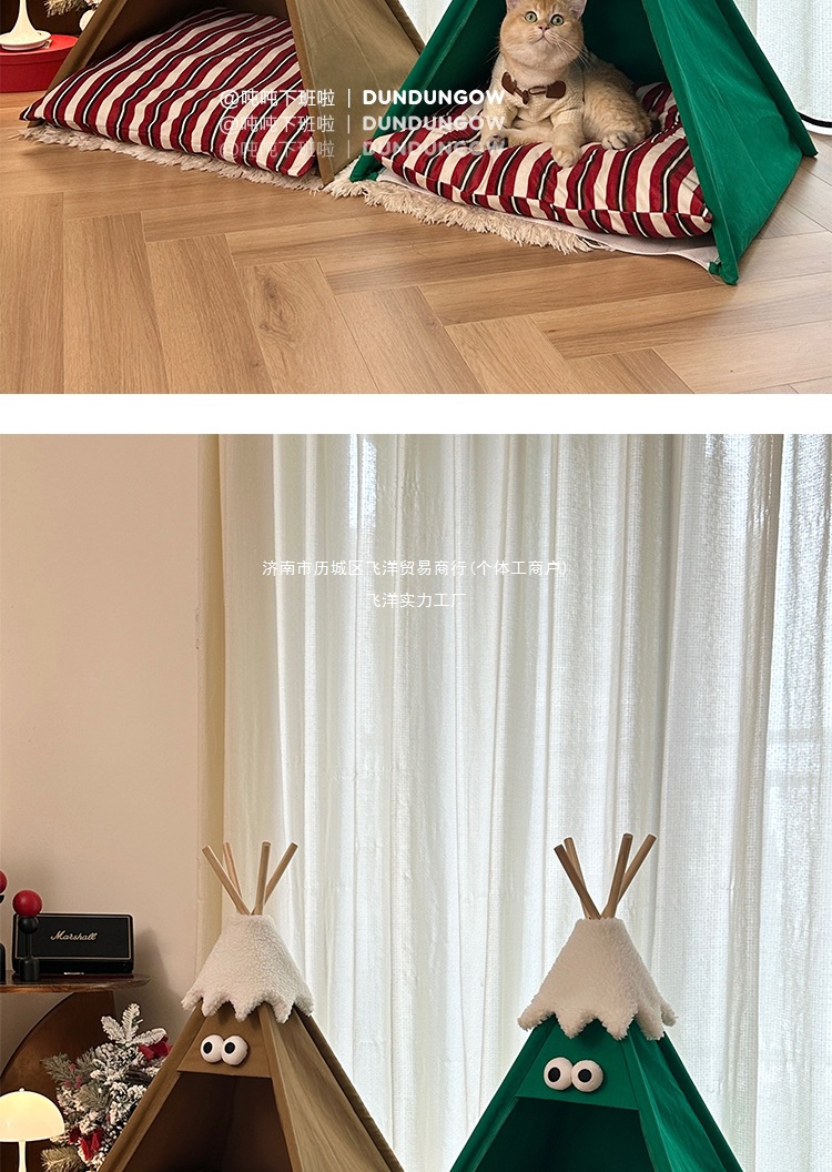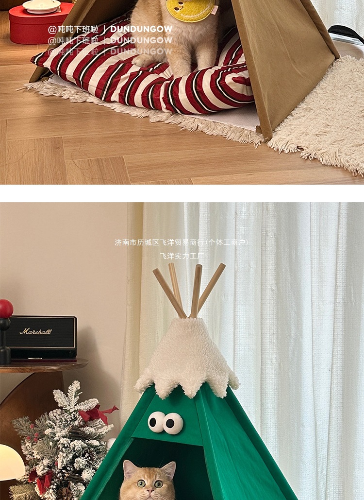 DUNDUN 텐트 고양이 개집, 사계절 모두 사용 가능, 반밀폐형, 탈부착 및 세척 가능, 고급스러운 고양이 개집, 애완동물 용품스토어 가기