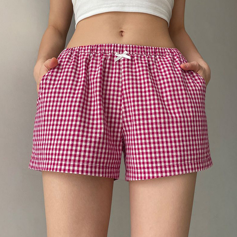 速卖通外贸韩系休闲时尚外贸ins风女装短裤蝴蝶结装饰格子裤子潮스토어 가기
