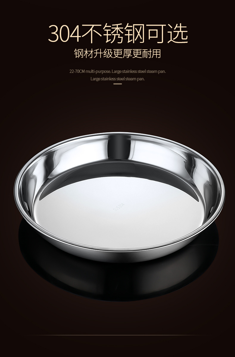 304 스테인레스 스틸 접시 원형 접시 가정용 상업용 대형 닭고기 접시 찜 접시 얕은 접시 라운드 Xinzekang