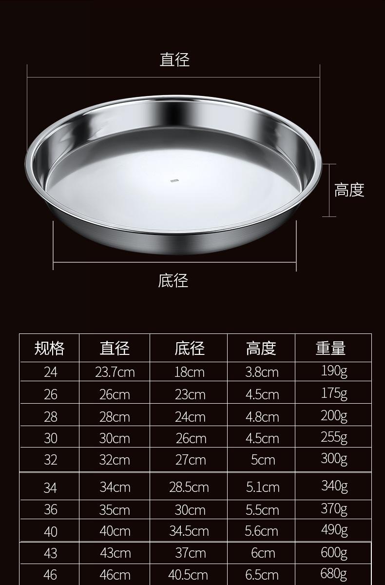 304 스테인레스 스틸 접시 원형 접시 가정용 상업용 대형 닭고기 접시 찜 접시 얕은 접시 라운드 Xinzekang스토어 가기