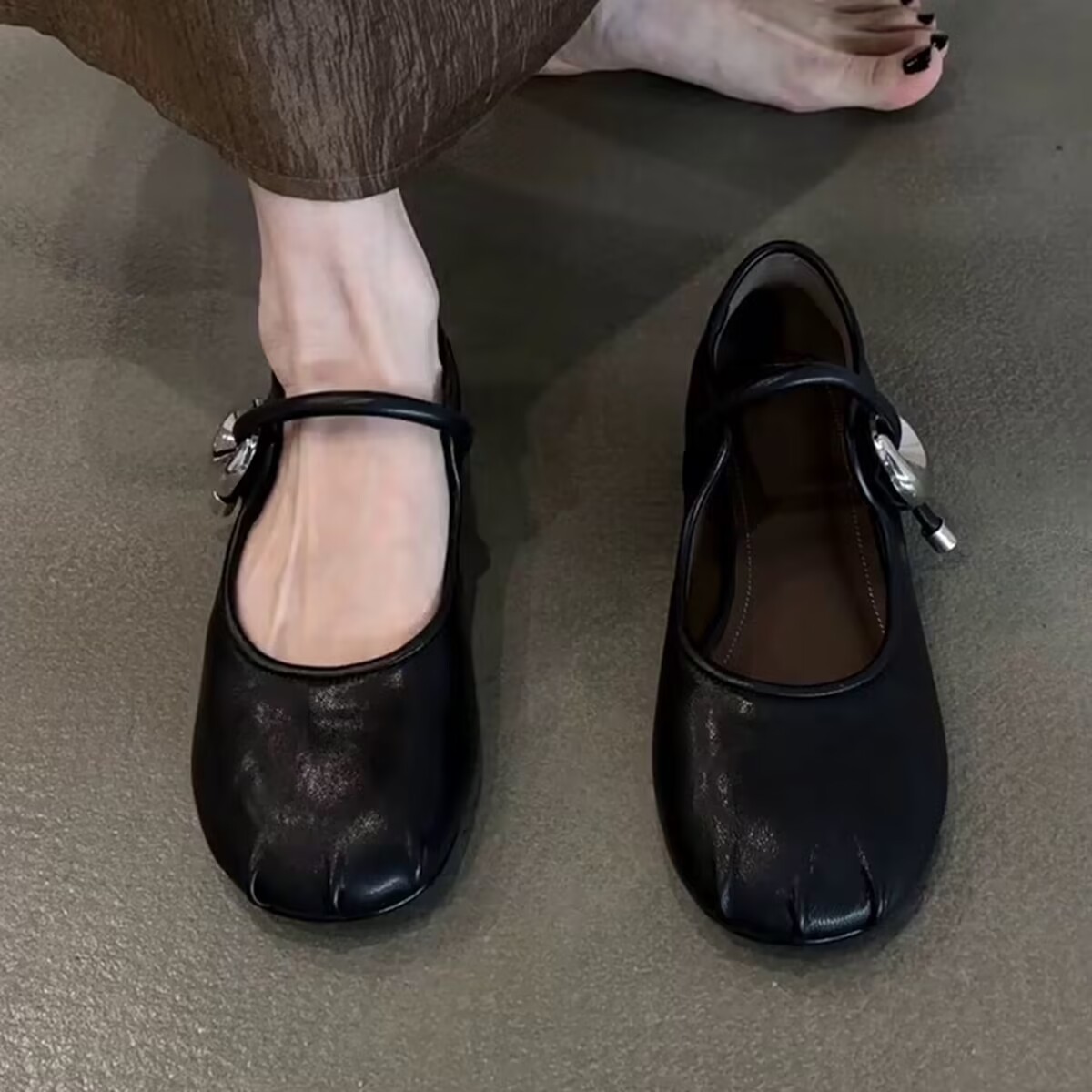 부드러운 가죽 버전 ~ 프렌치 스타일의 둥근 발가락 부드러운 가죽 원라인 버클 스트랩 여름 아우터 데일리 통근 다용도 펌프스스토어 가기