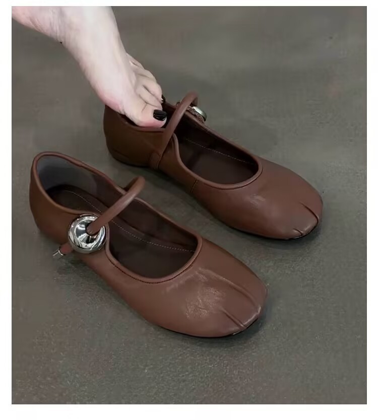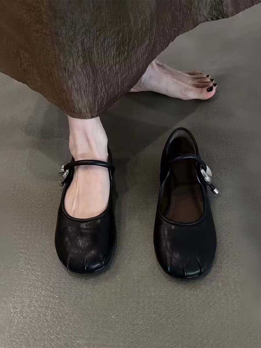 부드러운 가죽 버전 ~ 프렌치 스타일의 둥근 발가락 부드러운 가죽 원라인 버클 스트랩 여름 아우터 데일리 통근 다용도 펌프스