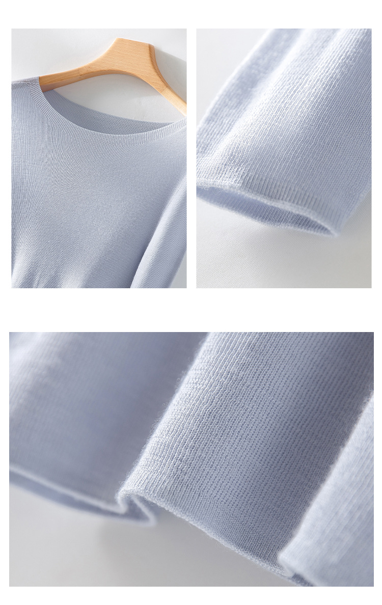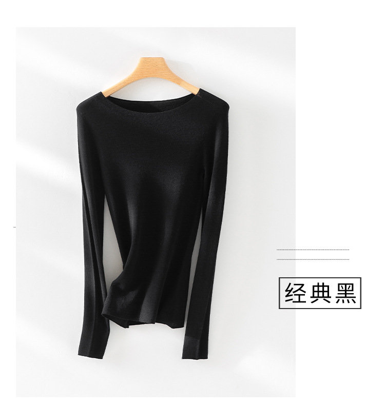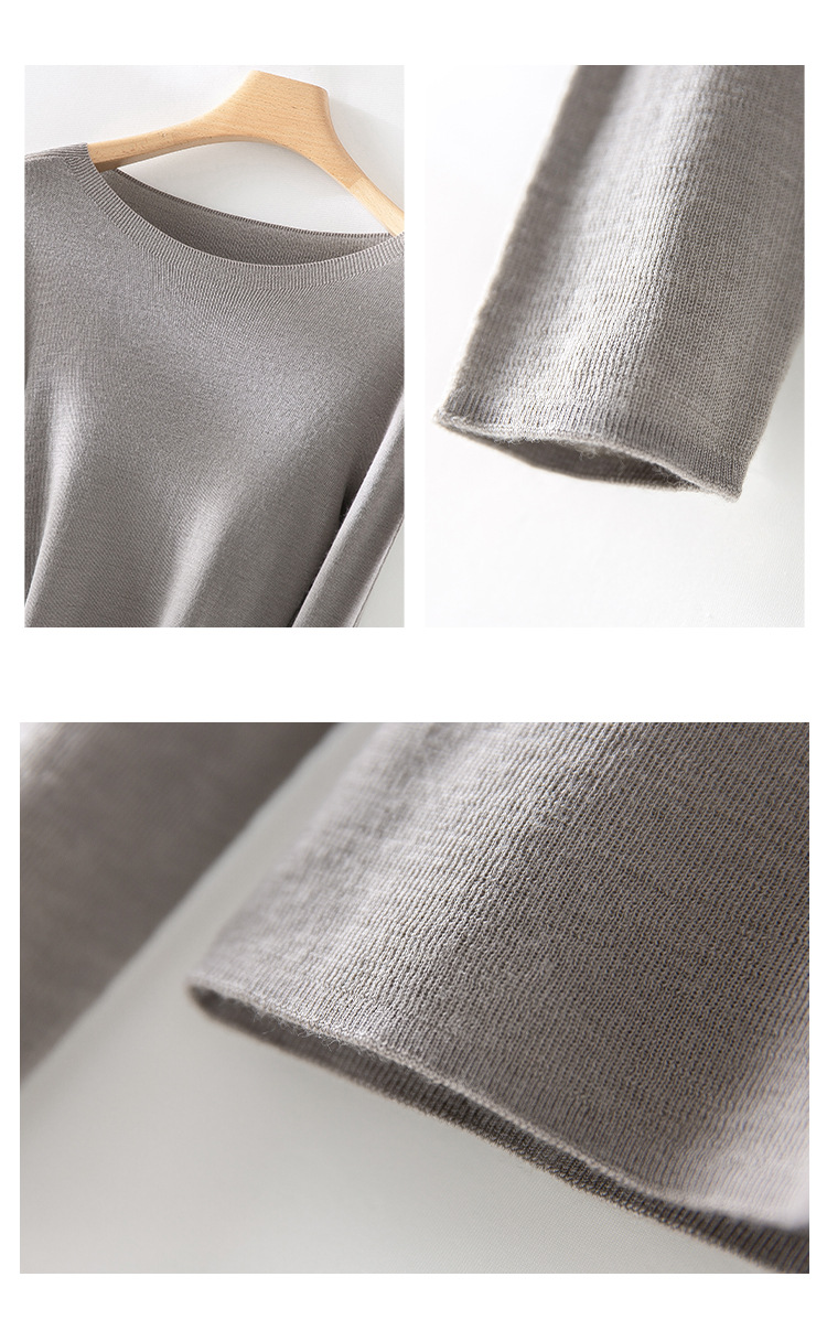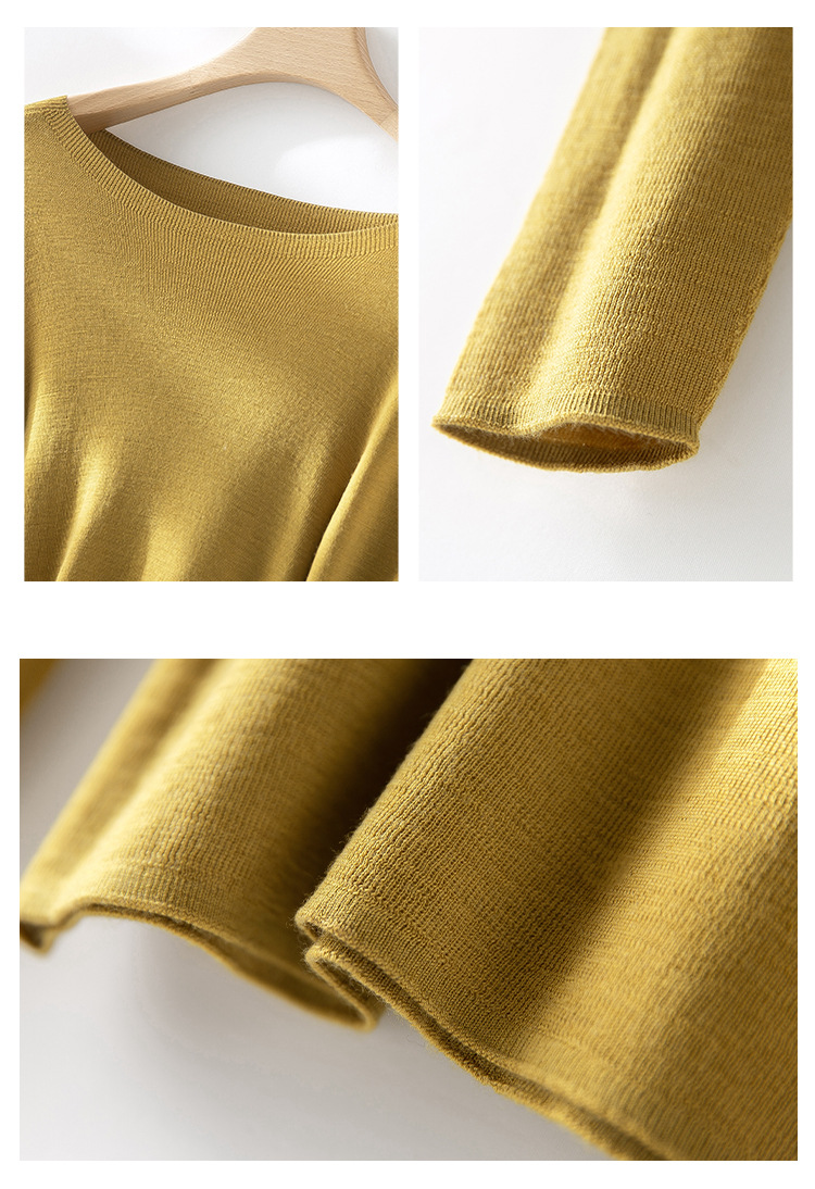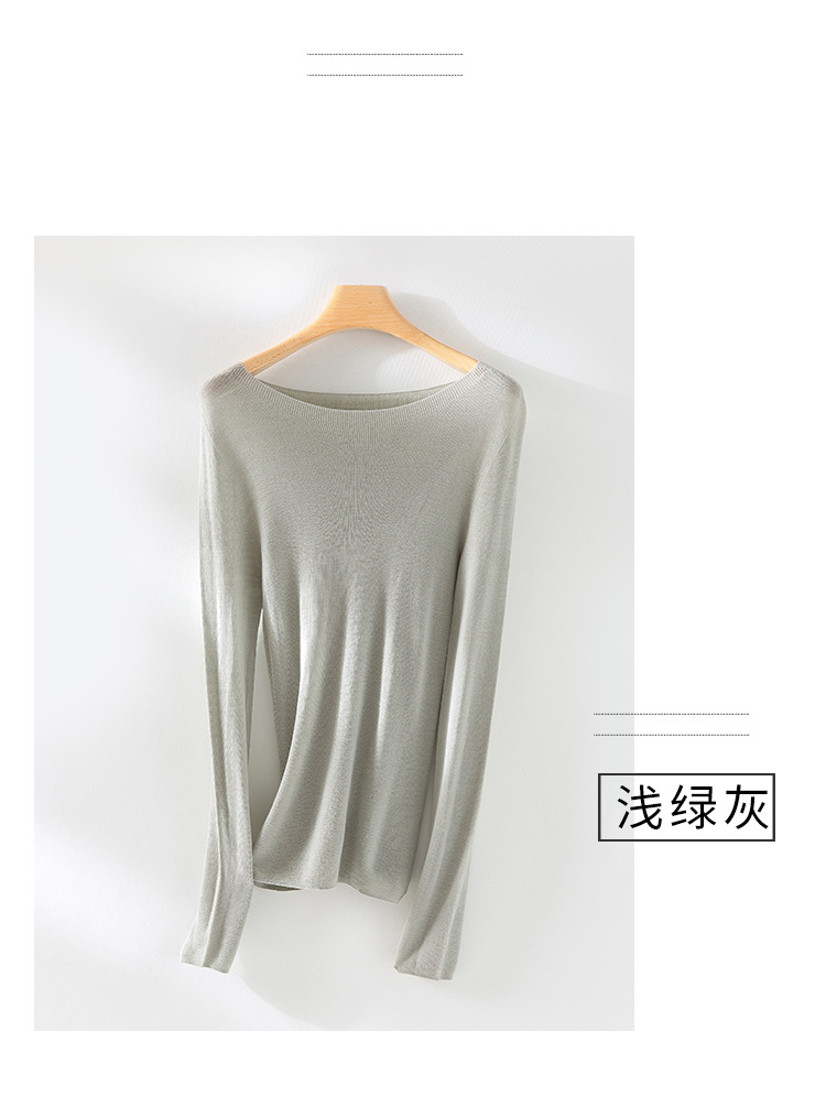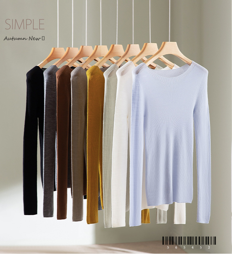 원라인 넥라인 긴팔 티셔츠 탑, OTW 그린 라벨 양쯔사 울 니트웨어, 가을용 다용도 기질 베이스 셔츠 여성용