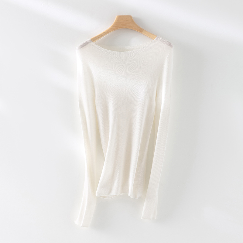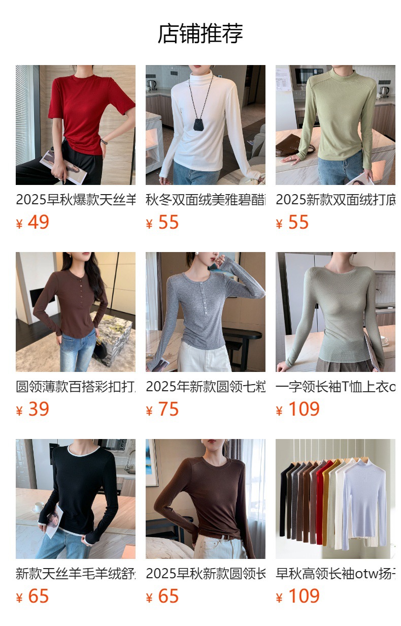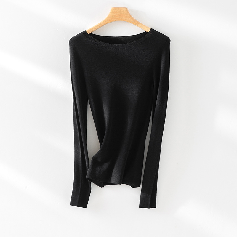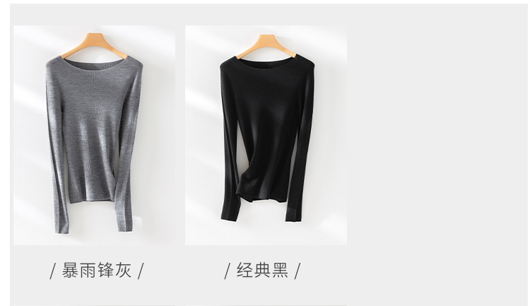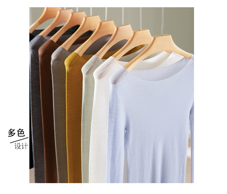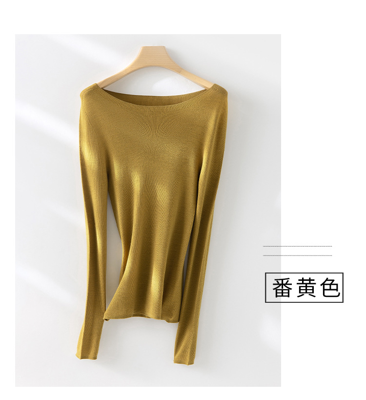 원라인 넥라인 긴팔 티셔츠 탑, OTW 그린 라벨 양쯔사 울 니트웨어, 가을용 다용도 기질 베이스 셔츠 여성용스토어 가기