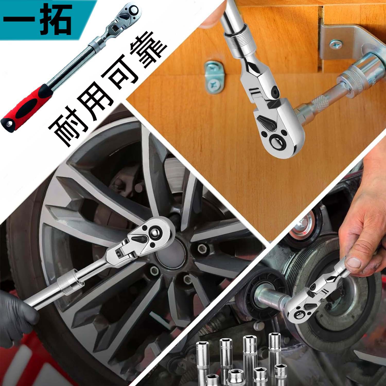 4피스 텔레스코픽 로커 래칫 렌치, 대형 플라이 24톱니 직선 핸들, 72톱니 곡선 핸들, 속도판 자동 수리 도구 세트스토어 가기