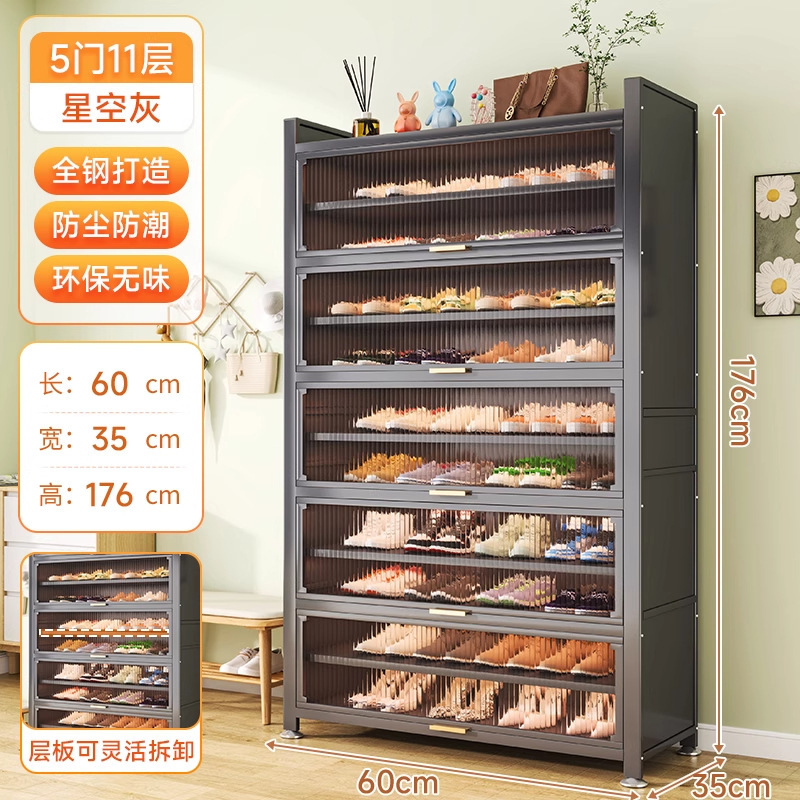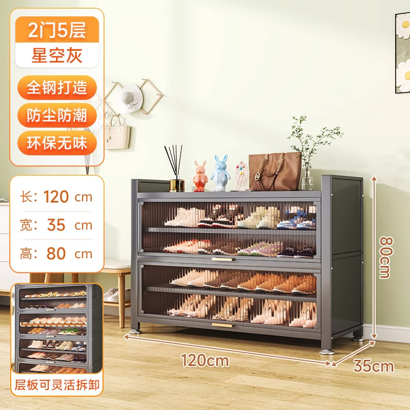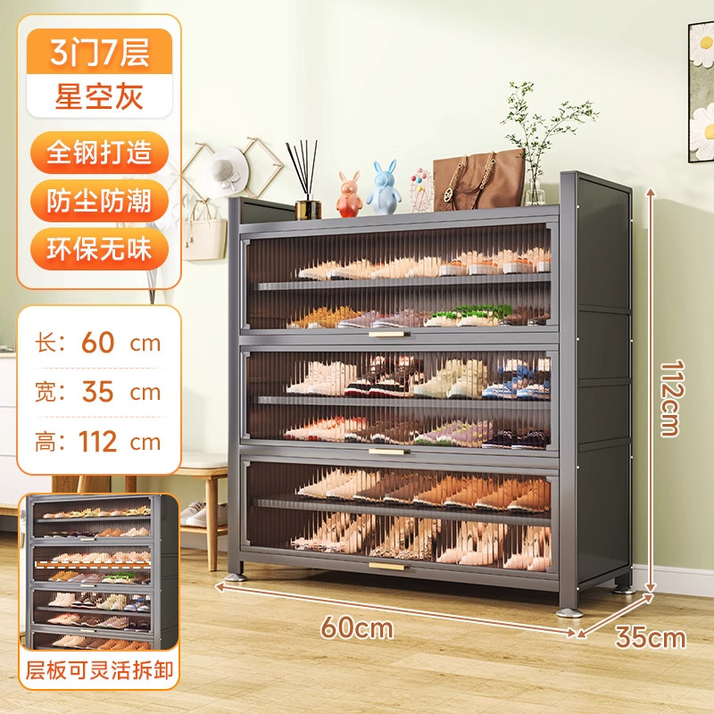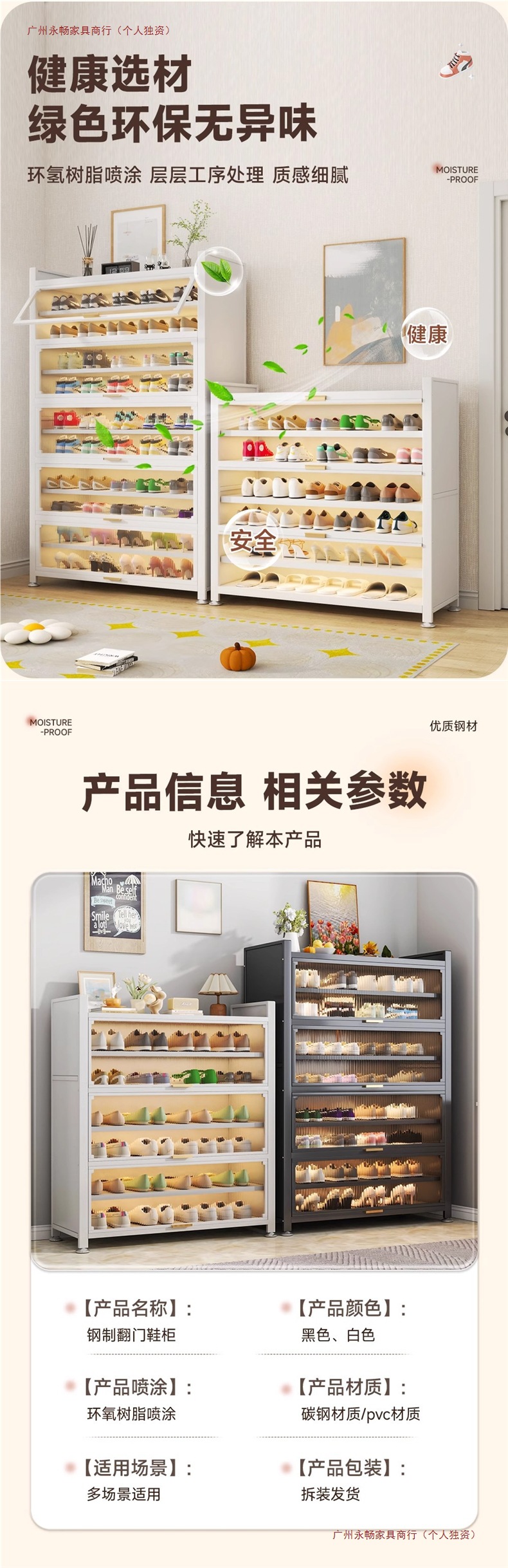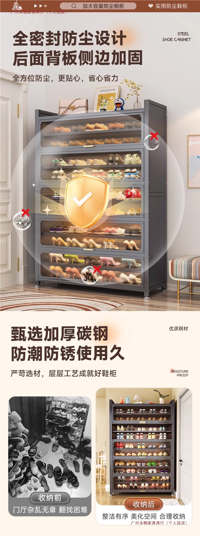 고급 강철 신발장, 가정용 다층 현관 캐비닛, 플립업 도어 신발장, 도어 일체형 캐비닛, 금속